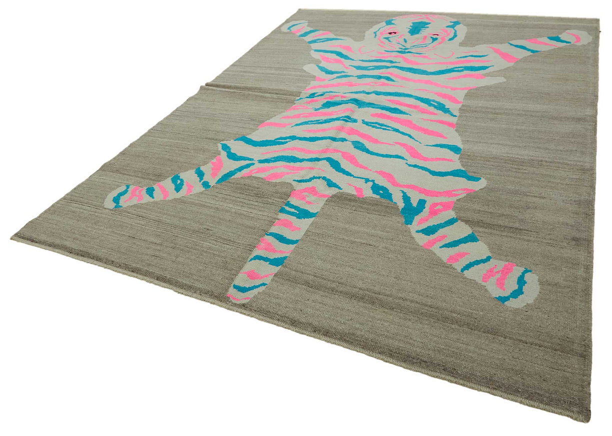 Handcrafted with exceptional care in Central Anatolia, Turkey, our tiger rugs are made from premium, high-quality wool, ensuring both durability and comfort. Each rug is meticulously handwoven by skilled artisans, celebrating the timeless art of rug-making passed down through generations. The bold tiger motif, paired with vibrant colors, brings a lively and modern twist to traditional design. These rugs are more than just floor coverings; they are statement pieces that infuse any space with character, energy, and artistry. Perfect for those seeking a unique, eye-catching addition to their decor.