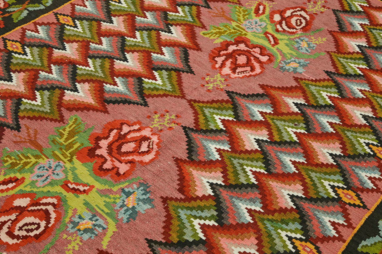 Charming Vintage Moldovan Rug from the 1970s, hand-crafted with intricate floral designs and a warm, inviting color scheme. This well-preserved vintage rug complements both bohemian and eclectic interiors. Enhance its longevity with a rug pad.