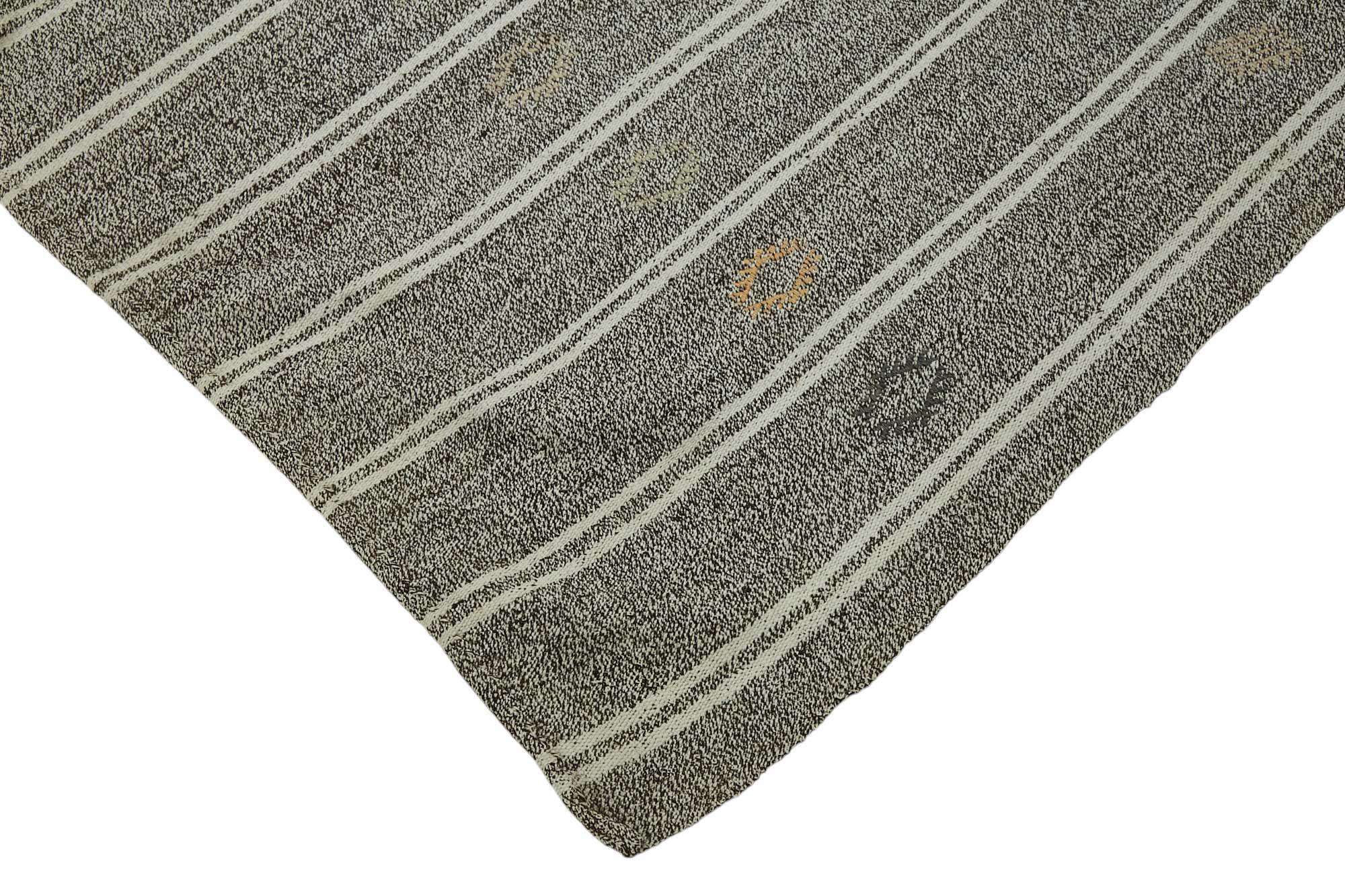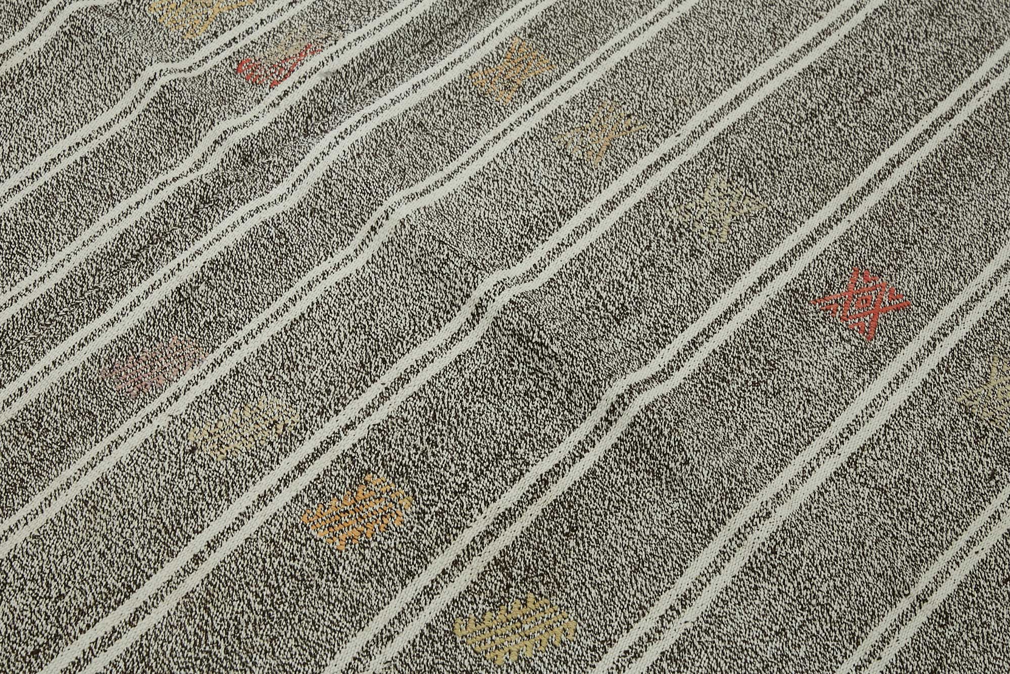 This handwoven kilim is crafted from a unique blend of goat hair and wool, a time-honored material combination used by Anatolian tribes for centuries. Known for its stiff, coarse texture, goat hair was traditionally used to make tents, saddle bags, and floor coverings due to its incredible durability and weather resistance.These vintage kilims, usually 40–60 years old, are perfect for high-traffic areas such as hallways, entryways, and office floors. The strong fiber structure allows the rug to lie flat and maintain its form over time.
