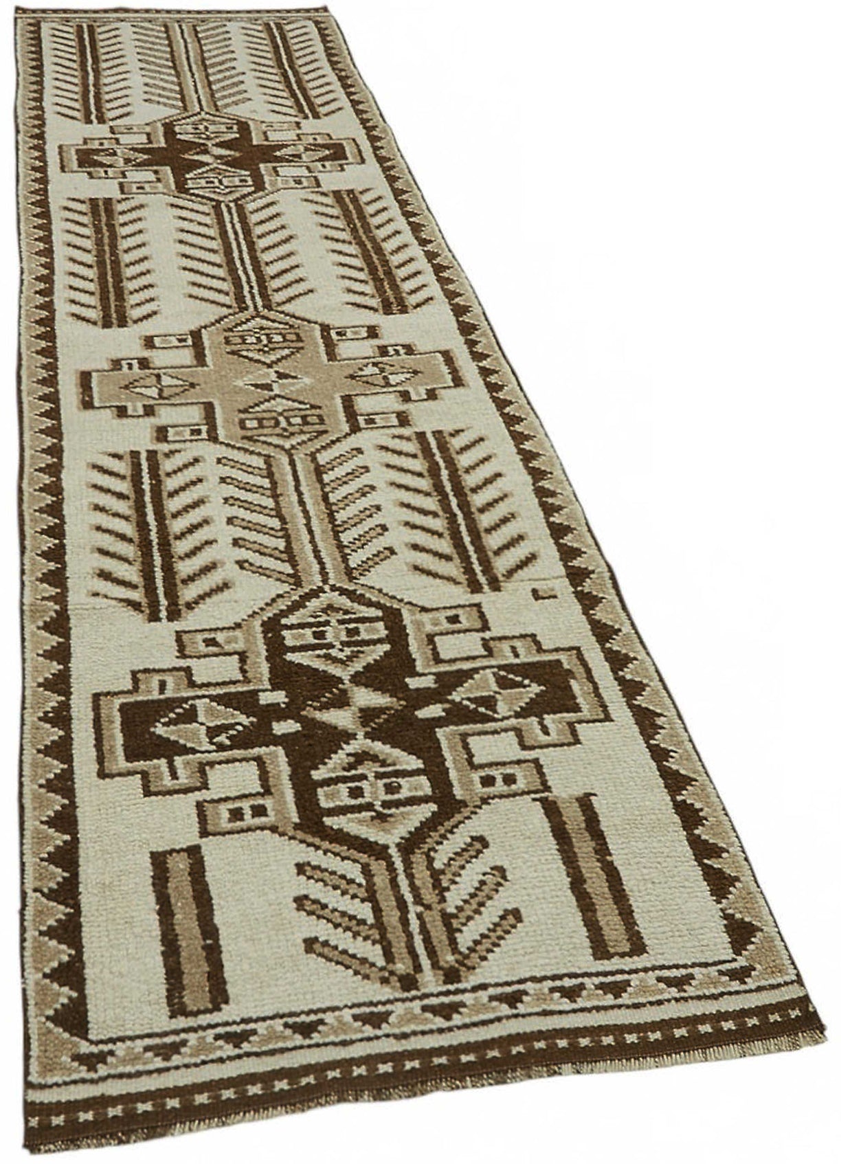 This exquisite runner rug is a rare example of tribal craftsmanship, hand-knotted by the women of the Herki tribe during the 1930s and 1940s. Made with exceptional-quality wool and tightly knotted to create a dense, medium-pile texture, these rugs are known for their lasting strength and luxurious feel underfoot.