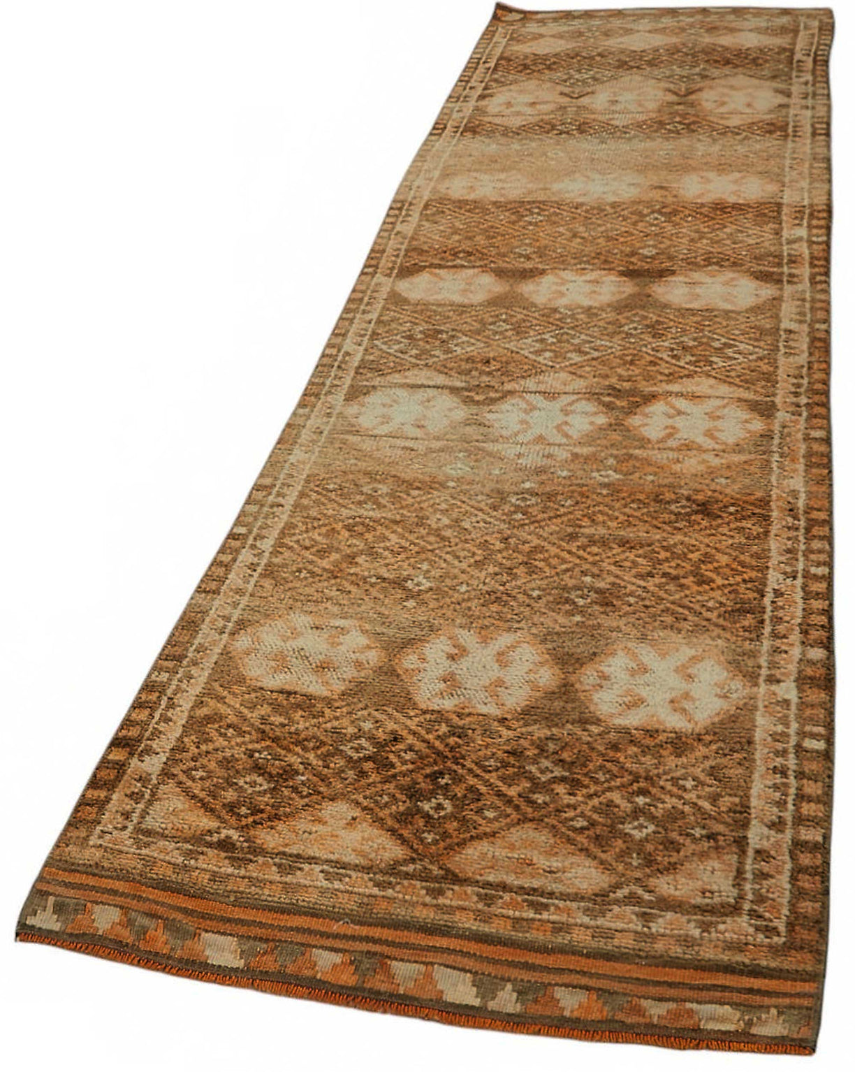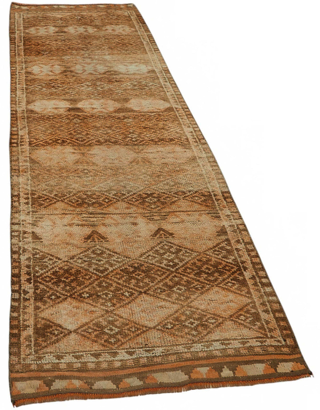 This exquisite runner rug is a rare example of tribal craftsmanship, hand-knotted by the women of the Herki tribe during the 1930s and 1940s. Made with exceptional-quality wool and tightly knotted to create a dense, medium-pile texture, these rugs are known for their lasting strength and luxurious feel underfoot.