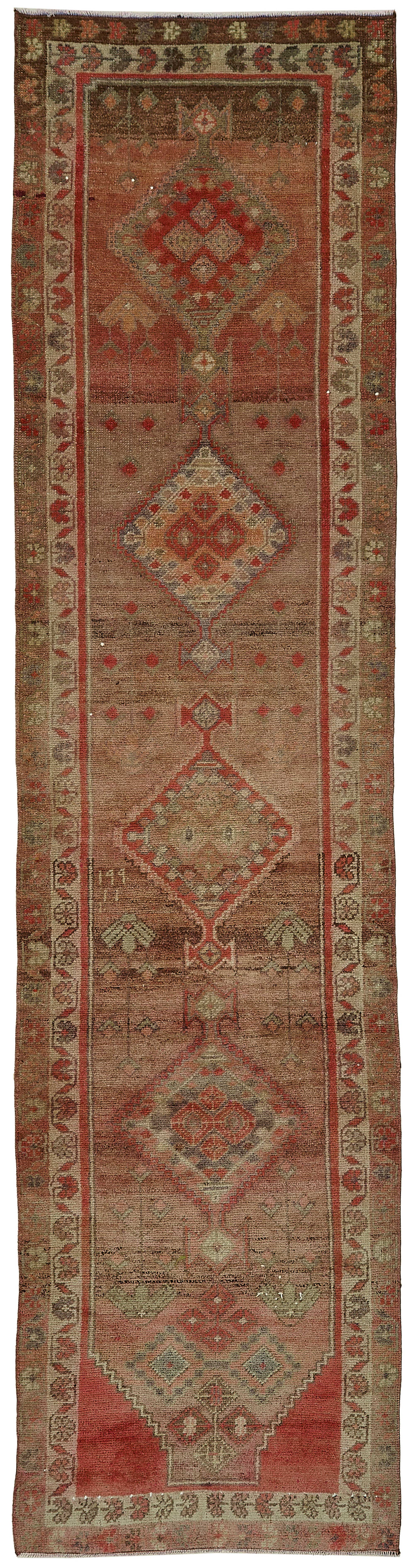 This exquisite runner rug is a rare example of tribal craftsmanship, hand-knotted by the women of the Herki tribe during the 1930s and 1940s. Made with exceptional-quality wool and tightly knotted to create a dense, medium-pile texture, these rugs are known for their lasting strength and luxurious feel underfoot.