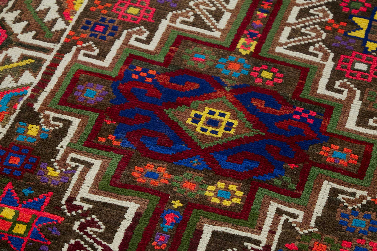 This exquisite runner rug is a rare example of tribal craftsmanship, hand-knotted by the women of the Herki tribe during the 1930s and 1940s. Made with exceptional-quality wool and tightly knotted to create a dense, medium-pile texture, these rugs are known for their lasting strength and luxurious feel underfoot.