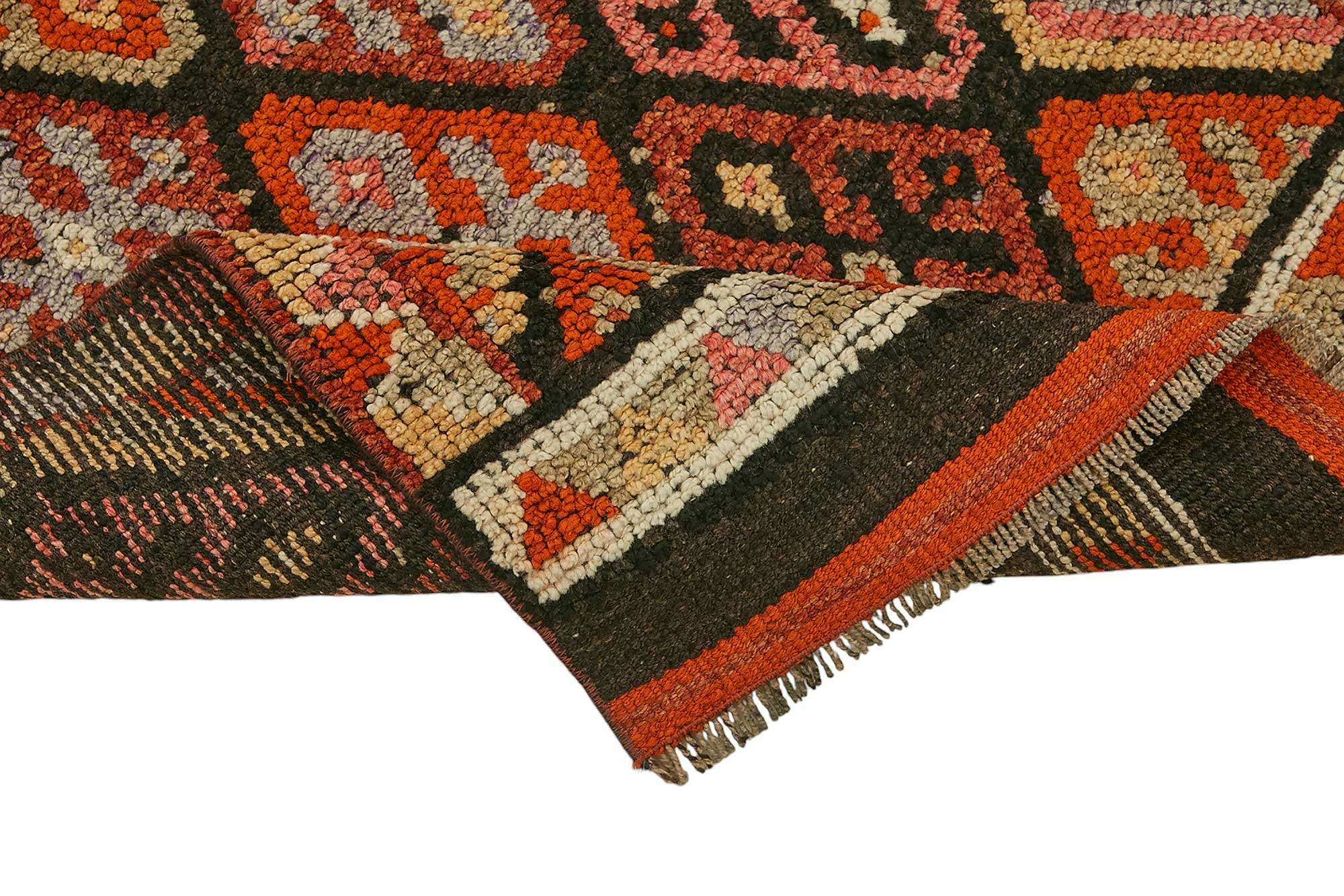 What truly sets Herki rugs apart is their vivid color palette—featuring bold reds, oranges, pinks, and hints of blue and grey—that reflects the artistic spirit and cultural expression of the tribe. The patterns are unique, abstract, and often symbolic, differing vastly from more traditional Anatolian or Persian designs.
