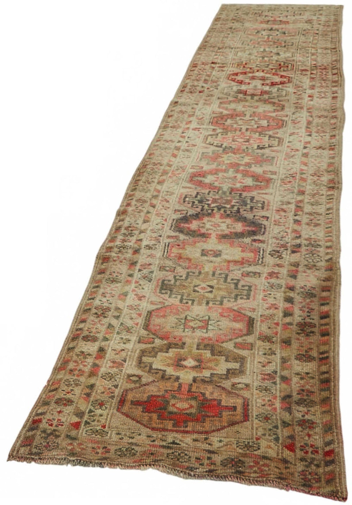 This exquisite runner rug is a rare example of tribal craftsmanship, hand-knotted by the women of the Herki tribe during the 1930s and 1940s. Made with exceptional-quality wool and tightly knotted to create a dense, medium-pile texture, these rugs are known for their lasting strength and luxurious feel underfoot.