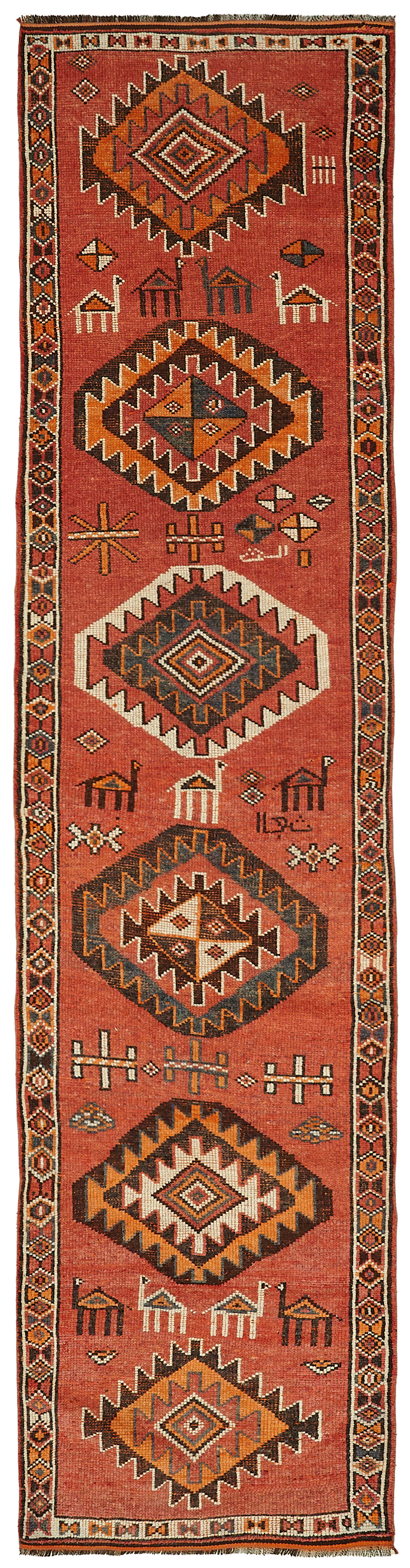 This exquisite runner rug is a rare example of tribal craftsmanship, hand-knotted by the women of the Herki tribe during the 1930s and 1940s. Made with exceptional-quality wool and tightly knotted to create a dense, medium-pile texture, these rugs are known for their lasting strength and luxurious feel underfoot.