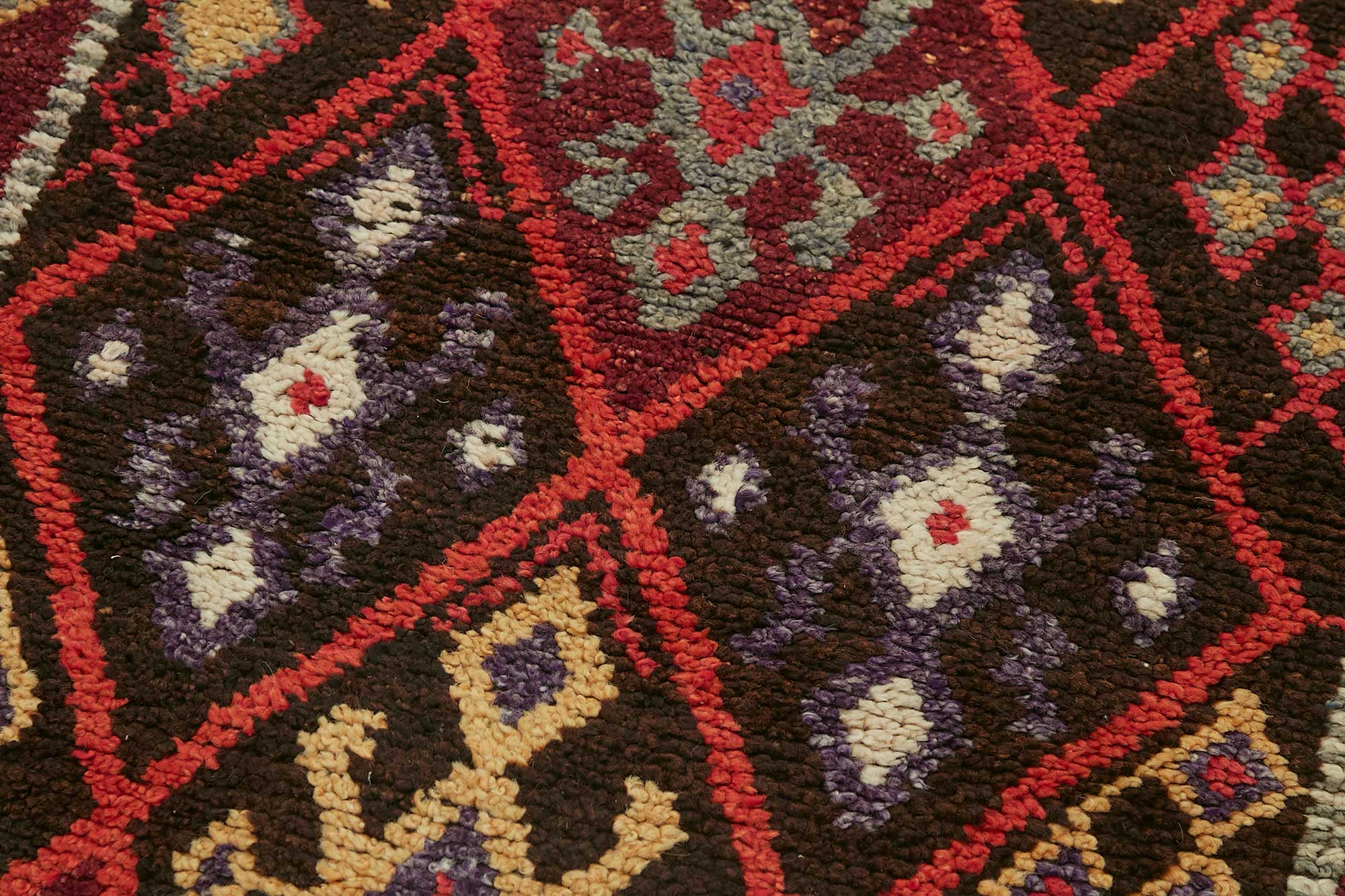 What truly sets Herki rugs apart is their vivid color palette—featuring bold reds, oranges, pinks, and hints of blue and grey—that reflects the artistic spirit and cultural expression of the tribe. The patterns are unique, abstract, and often symbolic, differing vastly from more traditional Anatolian or Persian designs.
