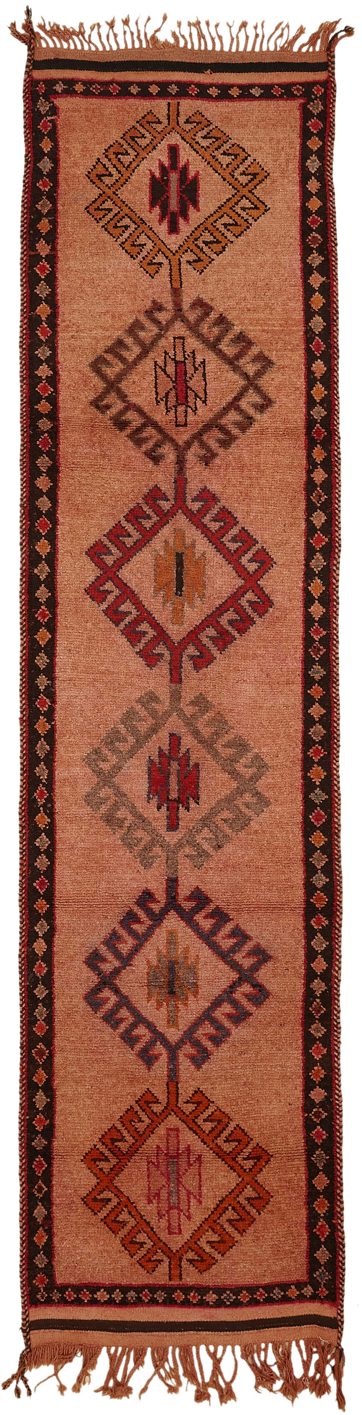 This exquisite runner rug is a rare example of tribal craftsmanship, hand-knotted by the women of the Herki tribe during the 1930s and 1940s. Made with exceptional-quality wool and tightly knotted to create a dense, medium-pile texture, these rugs are known for their lasting strength and luxurious feel underfoot.