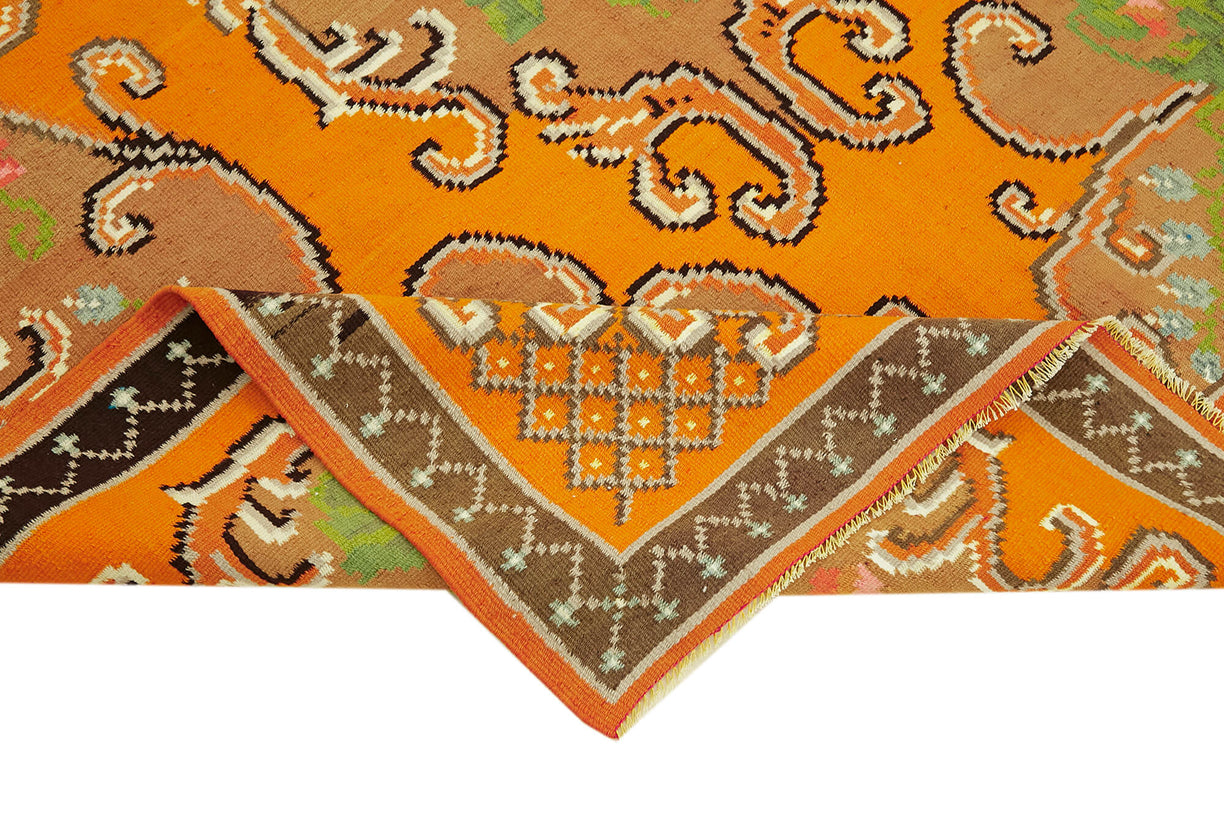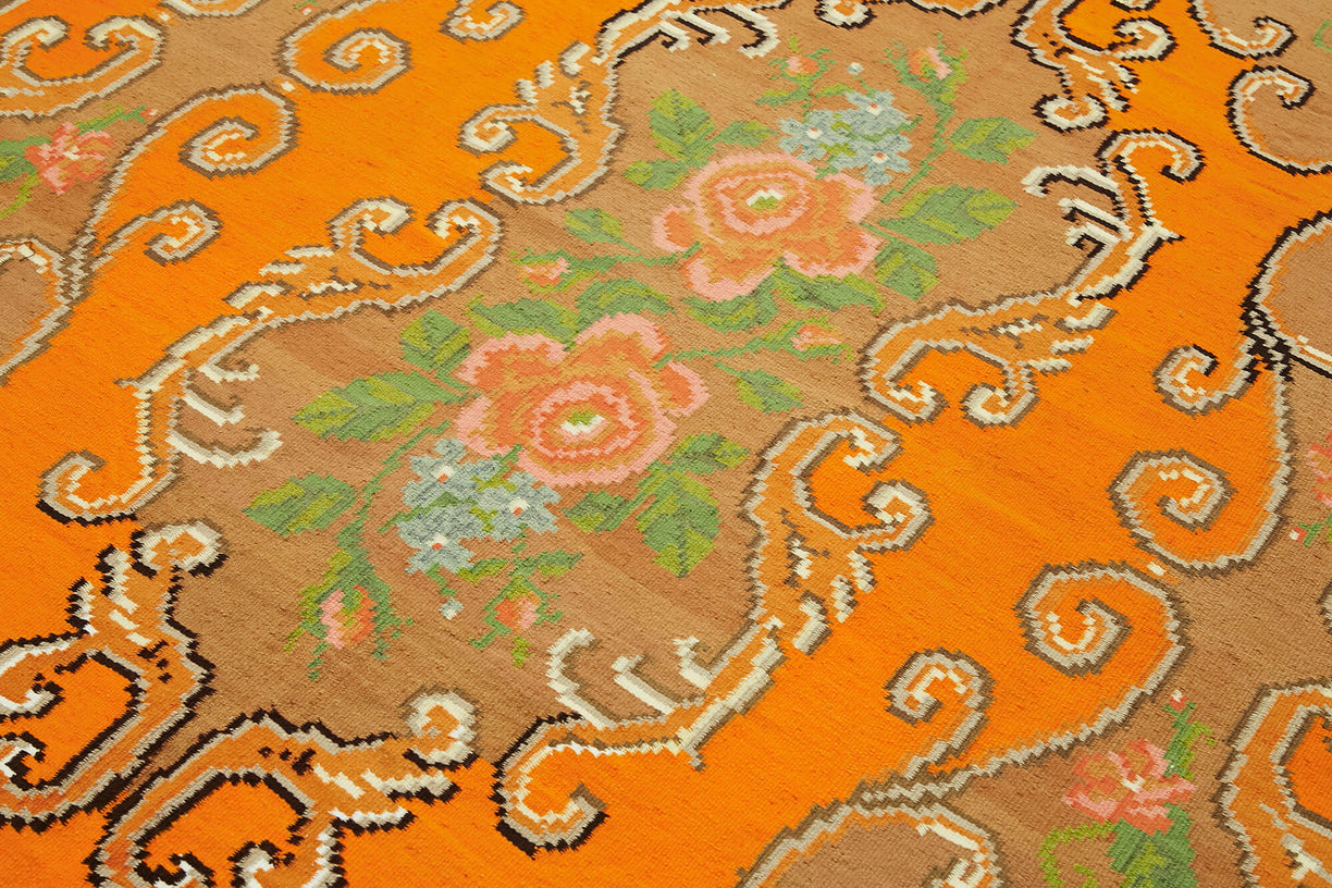 Charming Handmade Moldovan Kilim from the 1970s, hand-crafted with intricate floral designs and a warm, inviting color scheme. This well-preserved vintage rug complements both bohemian and eclectic interiors. Enhance its longevity with a rug pad.