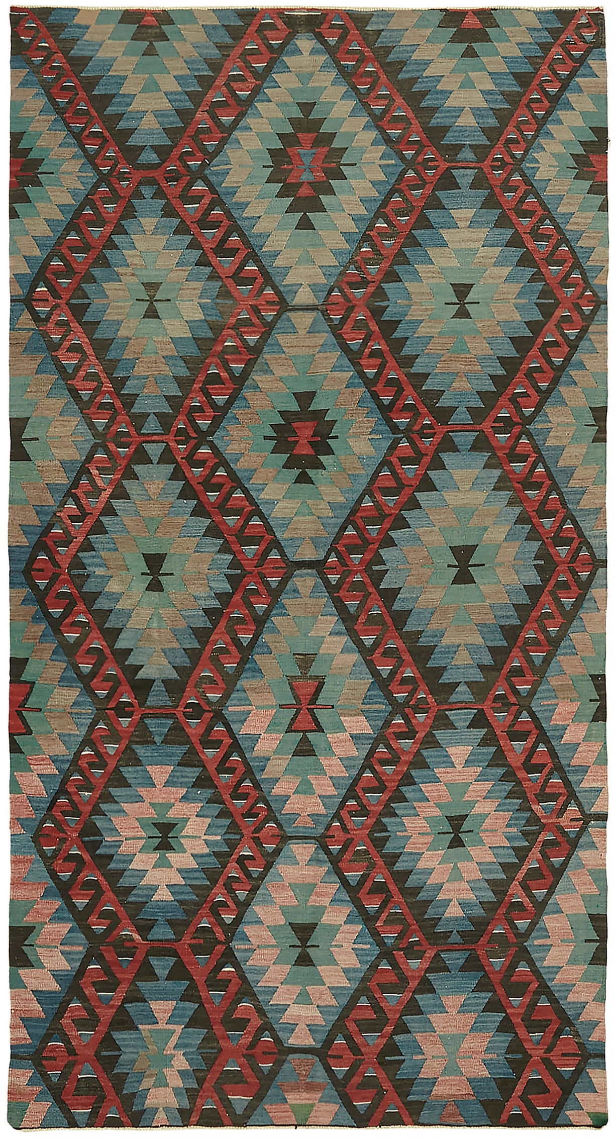 Vintage hand-woven Anatolian kilim rug created 40-50 years ago by skilled women in Anatolian villages. Made from the finest quality wool, these vintage treasures showcase the rich cultural heritage and intricate artistry of the region. Each kilim tells a unique story with its vibrant patterns and timeless beauty, making it a perfect addition to any home. Experience the warmth, history and unparalleled craftsmanship of these authentic Anatolian masterpieces.