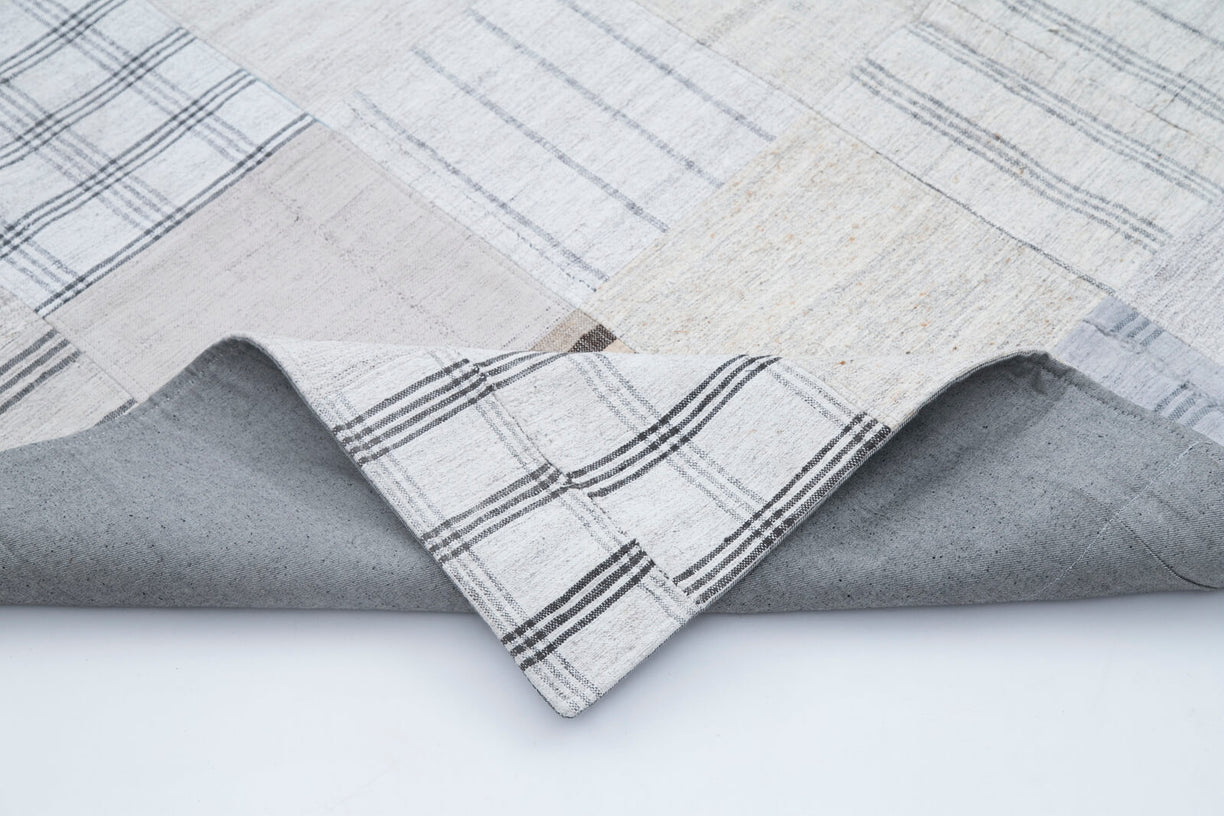 Each patchwork piece is backed with buckram and cotton lining to reinforce its structure, ensuring longevity without compromising its delicacy. These kilims offer a rare opportunity to own a piece of handmade heritage that feels at once authentic, artistic, and versatile.