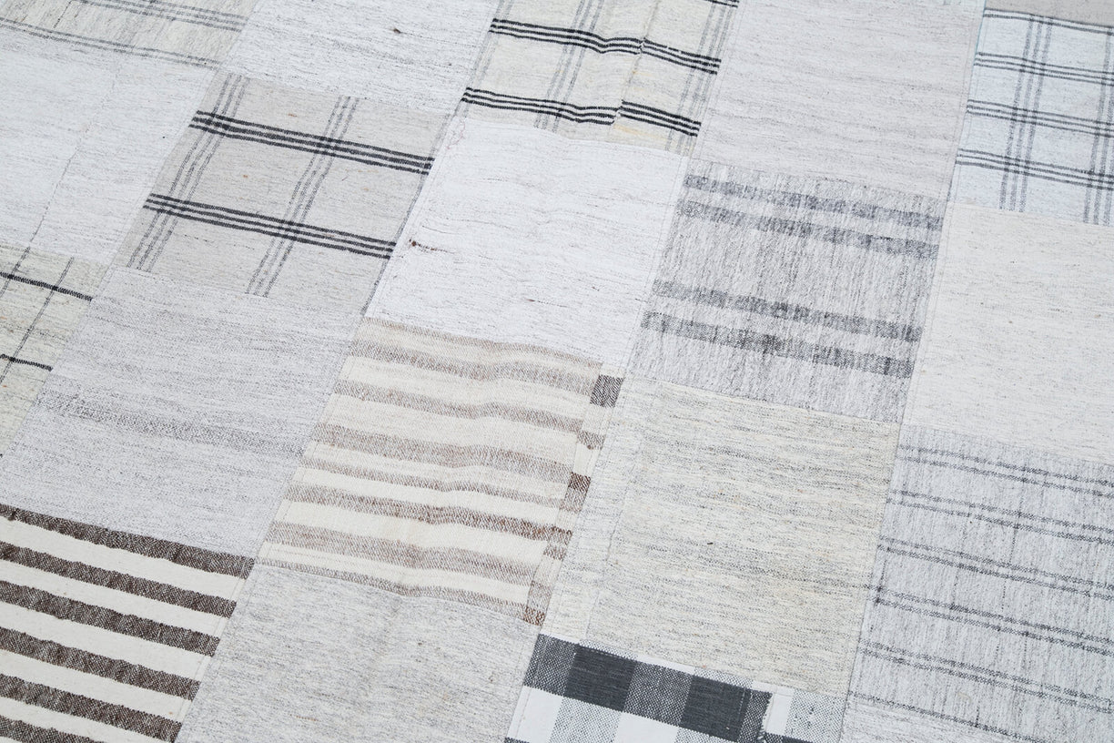 These unique handwoven patchwork kilims belong to a rare category of Anatolian flatweaves, often referred to as "perde kilims". Thinner and more flexible than traditional kilims, they are made using age-old weaving techniques on narrow looms. Panels are then skillfully stitched together, forming larger textile compositions from cotton, wool, and goat hair.What sets these rugs apart is their lightweight structure and rich historical significance. Originally used in Anatolian homes for both functional and decorative purposes, they now serve as refined and eco-conscious design elements. Their thinness adds an elegant layer of texture, making them ideal for wall hangings, bed runners, or accent rugs in low-traffic areas.