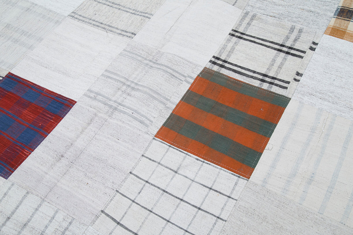 These unique handwoven patchwork kilims belong to a rare category of Anatolian flatweaves, often referred to as "perde kilims". Thinner and more flexible than traditional kilims, they are made using age-old weaving techniques on narrow looms. Panels are then skillfully stitched together, forming larger textile compositions from cotton, wool, and goat hair.What sets these rugs apart is their lightweight structure and rich historical significance. Originally used in Anatolian homes for both functional and decorative purposes, they now serve as refined and eco-conscious design elements. Their thinness adds an elegant layer of texture, making them ideal for wall hangings, bed runners, or accent rugs in low-traffic areas.