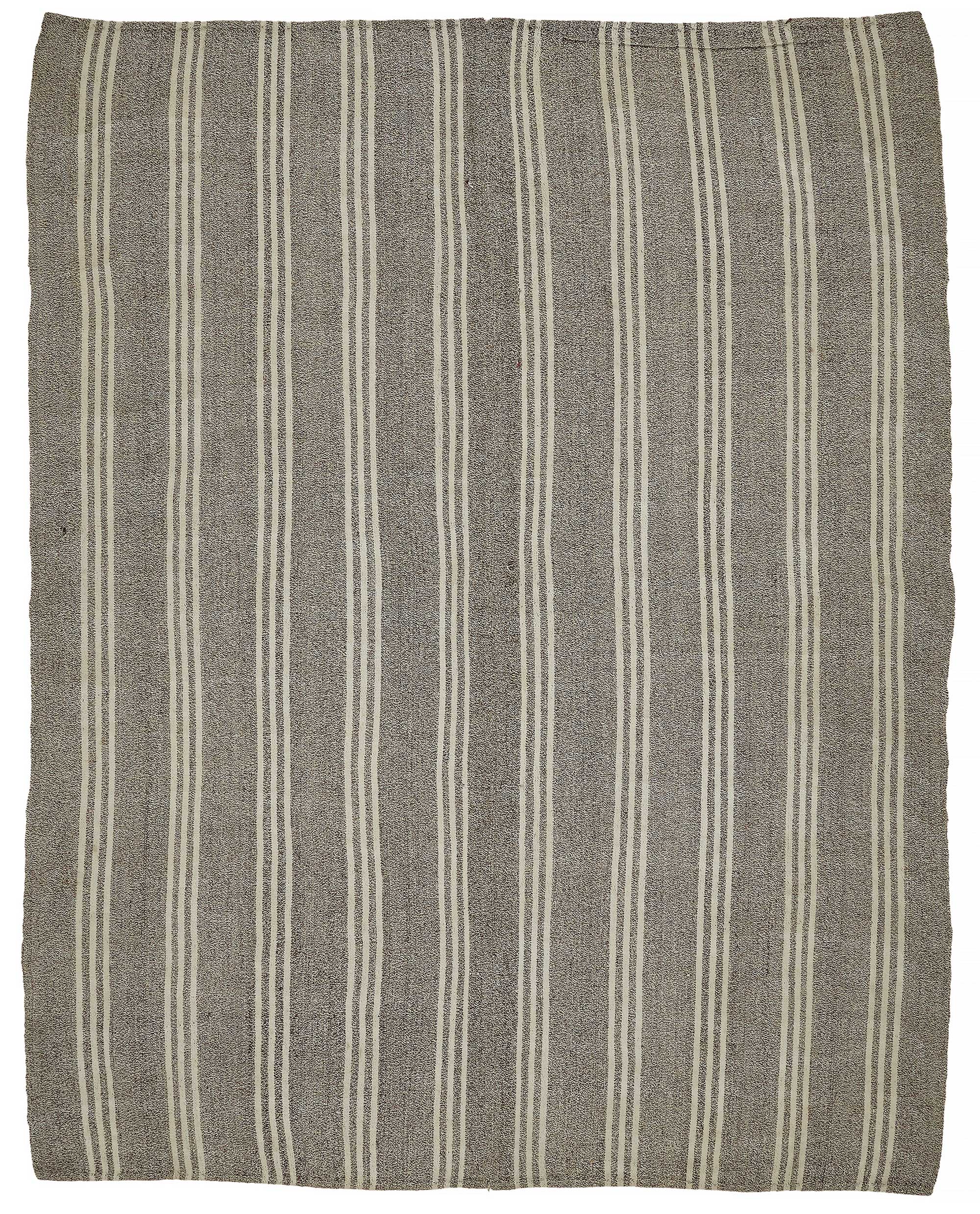 This handwoven kilim is crafted from a unique blend of goat hair and wool, a time-honored material combination used by Anatolian tribes for centuries. Known for its stiff, coarse texture, goat hair was traditionally used to make tents, saddle bags, and floor coverings due to its incredible durability and weather resistance.These vintage kilims, usually 40–60 years old, are perfect for high-traffic areas such as hallways, entryways, and office floors. The strong fiber structure allows the rug to lie flat and maintain its form over time.