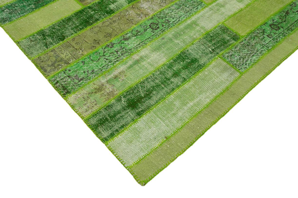 This modern patchwork rug is a striking example of Anatolian craftsmanship fused with contemporary design. Made from 30 to 50-year-old hand-knotted vintage Turkish rugs, each piece is carefully selected from Anatolia’s weaving villages, then restored, neutralized, and overdyed with natural, plant-based dyes to achieve a vibrant and cohesive palette.What sets this rug apart is its bold geometric composition. The individual fragments are cut into dynamic shapes and arranged in a symmetrical, graphic layout, showcasing sharp angles, framed blocks, and a powerful sense of rhythm. Every section retains elements of its original texture and motif, now enhanced with low pile depth and modern color contrasts.The rug is backed with buckram and cotton to ensure durability and structure, making it ideal for spacious interiors such as living rooms, dining areas, or professional spaces that benefit from a strong visual centerpiece.