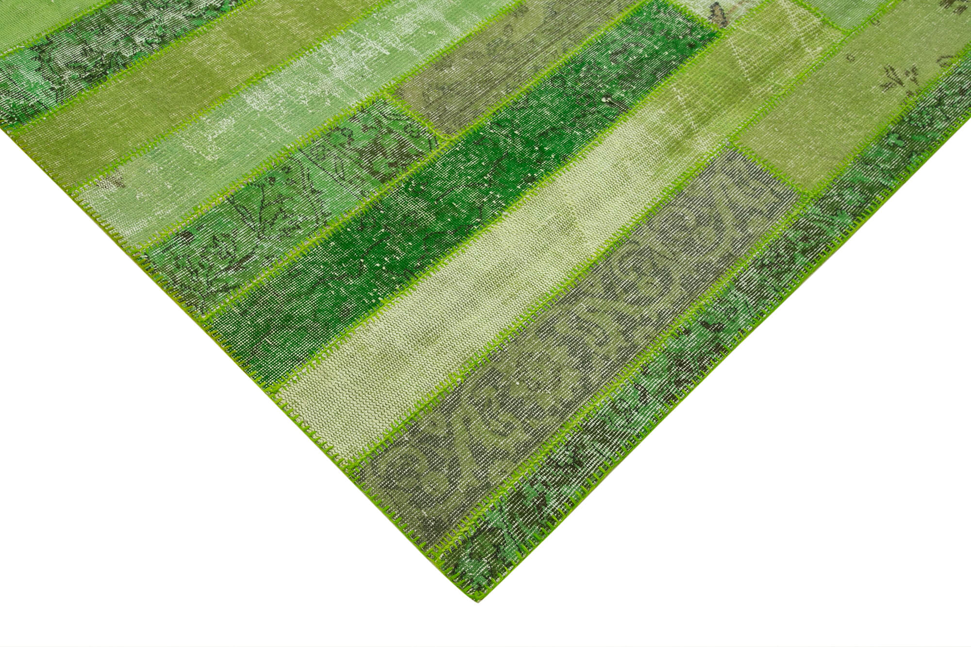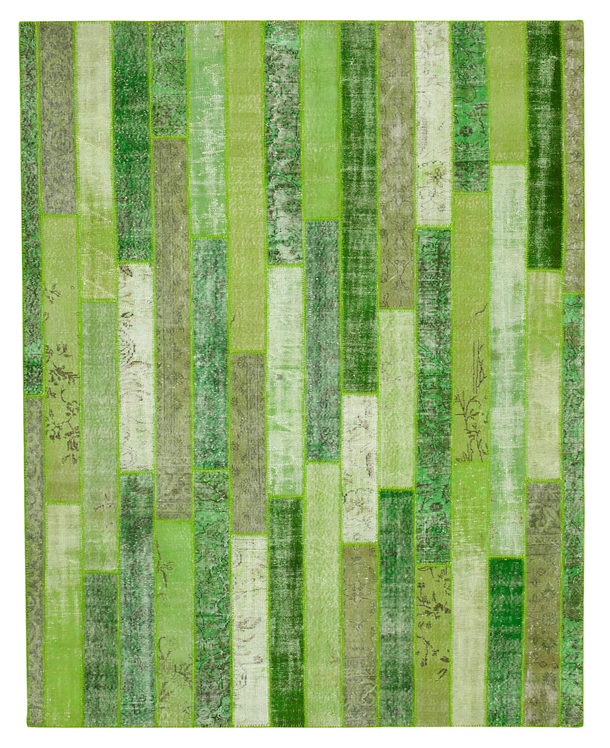 This modern patchwork rug is a striking example of Anatolian craftsmanship fused with contemporary design. Made from 30 to 50-year-old hand-knotted vintage Turkish rugs, each piece is carefully selected from Anatolia’s weaving villages, then restored, neutralized, and overdyed with natural, plant-based dyes to achieve a vibrant and cohesive palette.What sets this rug apart is its bold geometric composition. The individual fragments are cut into dynamic shapes and arranged in a symmetrical, graphic layout, showcasing sharp angles, framed blocks, and a powerful sense of rhythm. Every section retains elements of its original texture and motif, now enhanced with low pile depth and modern color contrasts.The rug is backed with buckram and cotton to ensure durability and structure, making it ideal for spacious interiors such as living rooms, dining areas, or professional spaces that benefit from a strong visual centerpiece.