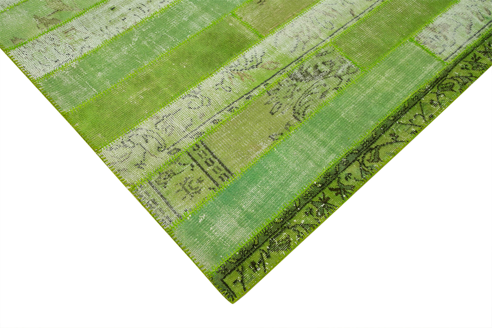 This modern patchwork rug is a striking example of Anatolian craftsmanship fused with contemporary design. Made from 30 to 50-year-old hand-knotted vintage Turkish rugs, each piece is carefully selected from Anatolia’s weaving villages, then restored, neutralized, and overdyed with natural, plant-based dyes to achieve a vibrant and cohesive palette.What sets this rug apart is its bold geometric composition. The individual fragments are cut into dynamic shapes and arranged in a symmetrical, graphic layout, showcasing sharp angles, framed blocks, and a powerful sense of rhythm. Every section retains elements of its original texture and motif, now enhanced with low pile depth and modern color contrasts.The rug is backed with buckram and cotton to ensure durability and structure, making it ideal for spacious interiors such as living rooms, dining areas, or professional spaces that benefit from a strong visual centerpiece.