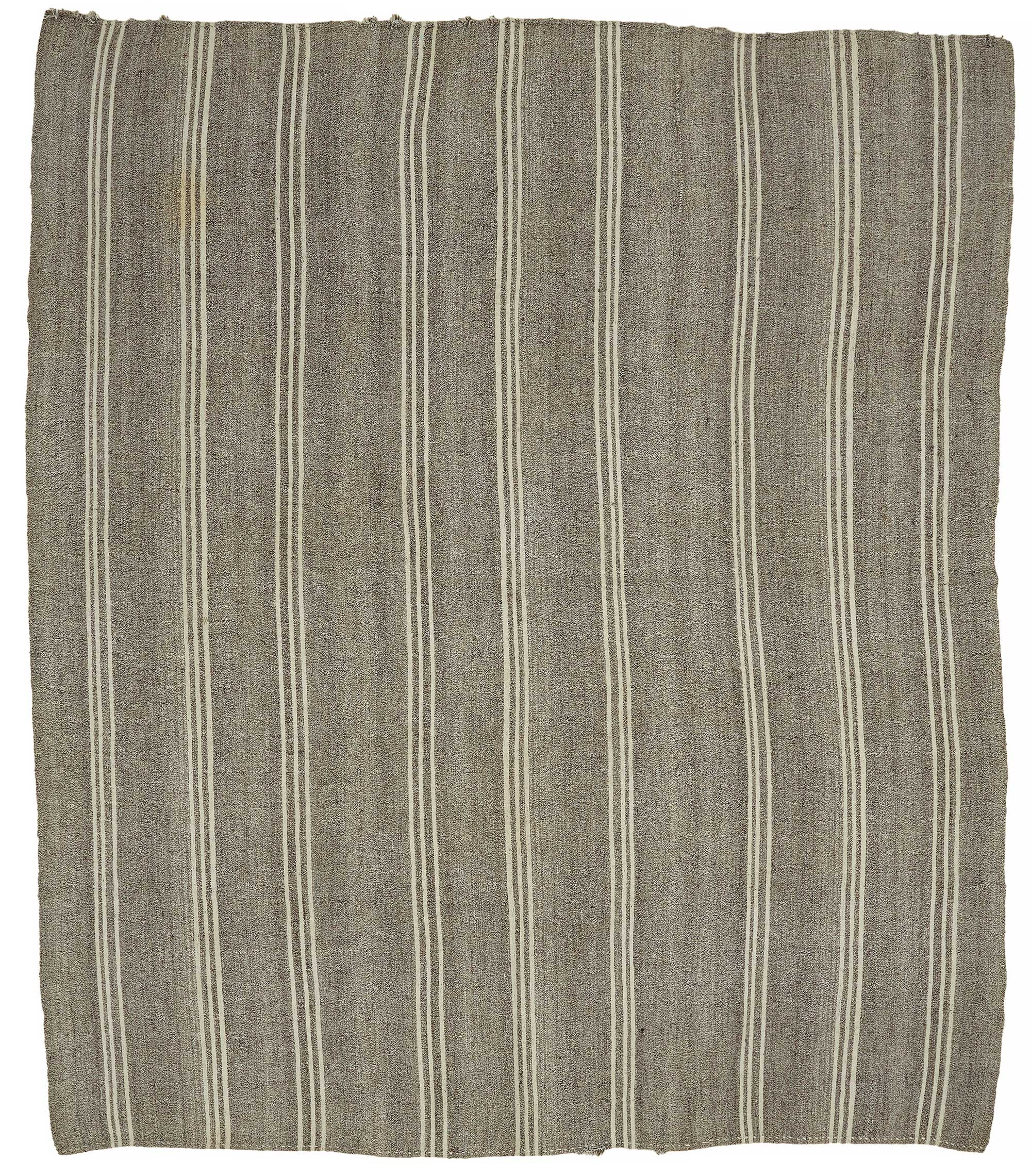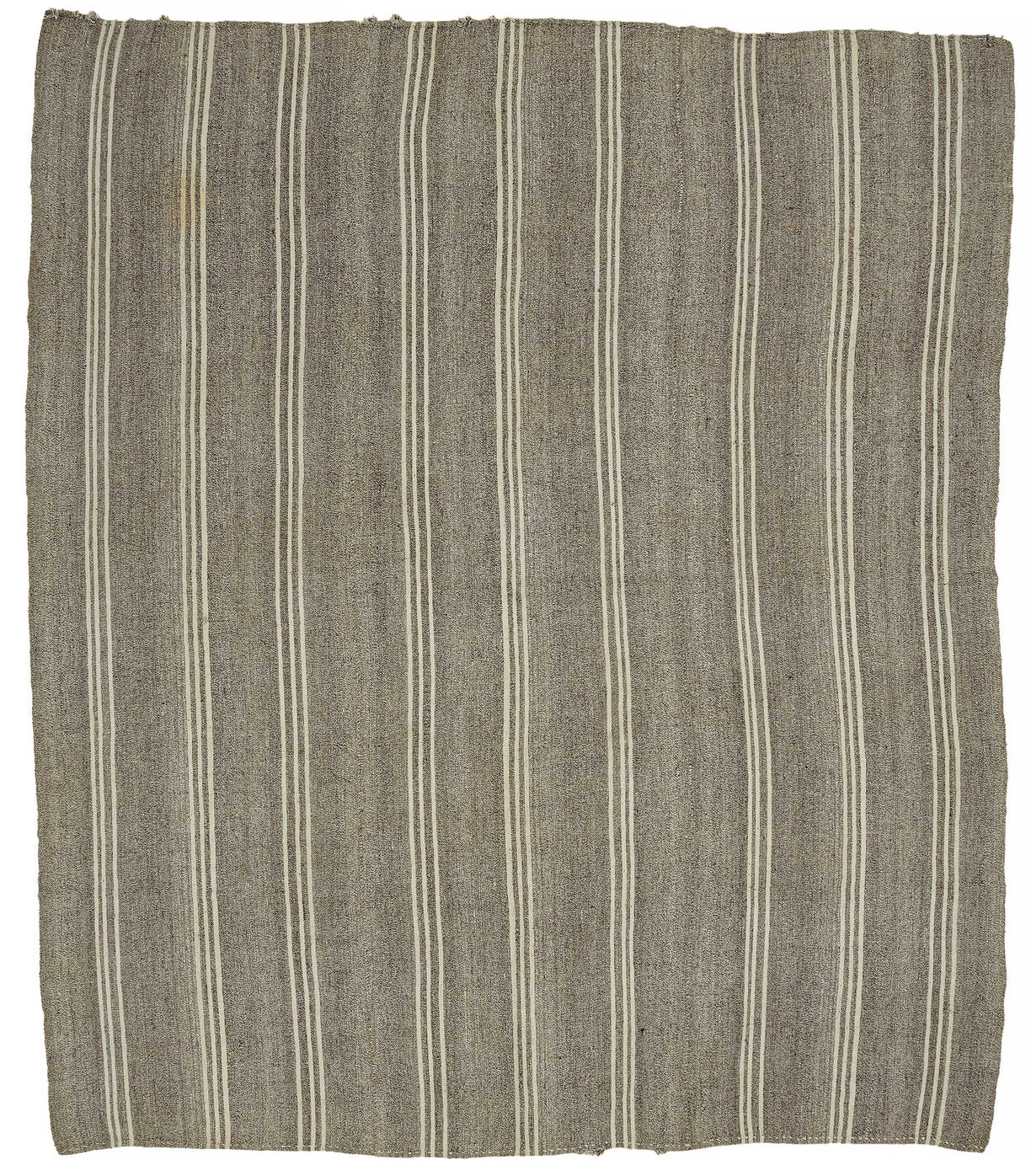 This handwoven kilim is crafted from a unique blend of goat hair and wool, a time-honored material combination used by Anatolian tribes for centuries. Known for its stiff, coarse texture, goat hair was traditionally used to make tents, saddle bags, and floor coverings due to its incredible durability and weather resistance.These vintage kilims, usually 40–60 years old, are perfect for high-traffic areas such as hallways, entryways, and office floors. The strong fiber structure allows the rug to lie flat and maintain its form over time.