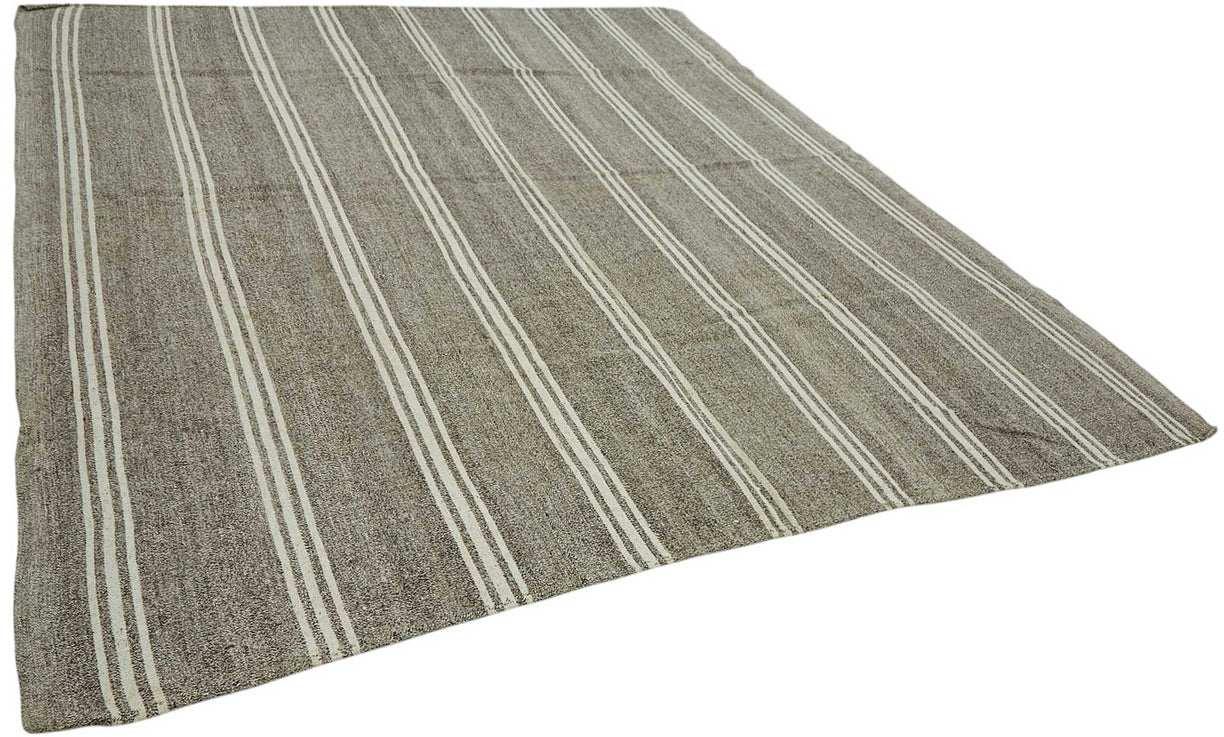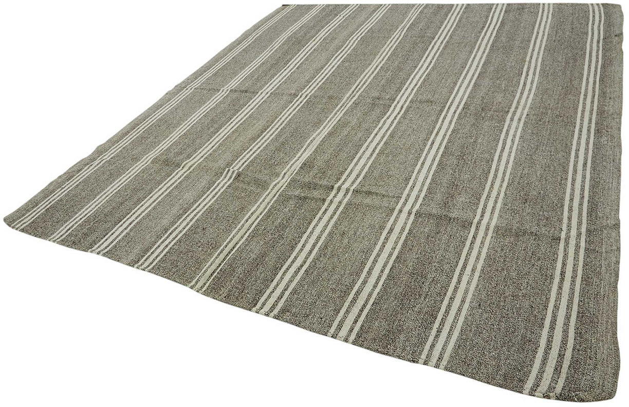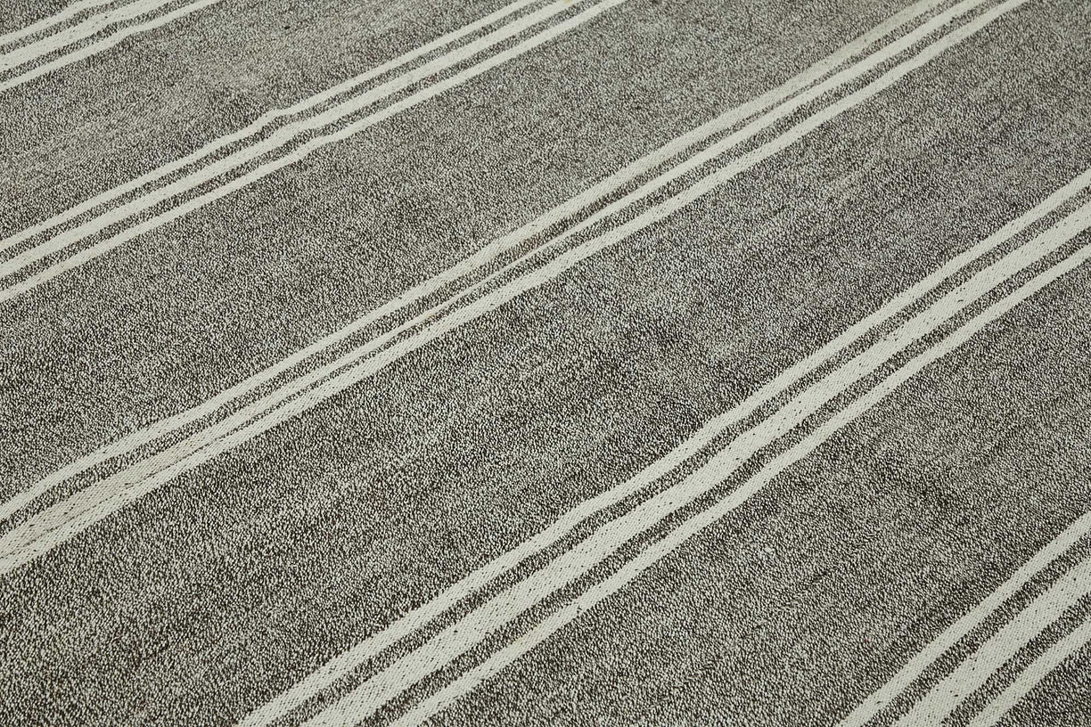 This handwoven kilim is crafted from a unique blend of goat hair and wool, a time-honored material combination used by Anatolian tribes for centuries. Known for its stiff, coarse texture, goat hair was traditionally used to make tents, saddle bags, and floor coverings due to its incredible durability and weather resistance.These vintage kilims, usually 40–60 years old, are perfect for high-traffic areas such as hallways, entryways, and office floors. The strong fiber structure allows the rug to lie flat and maintain its form over time.