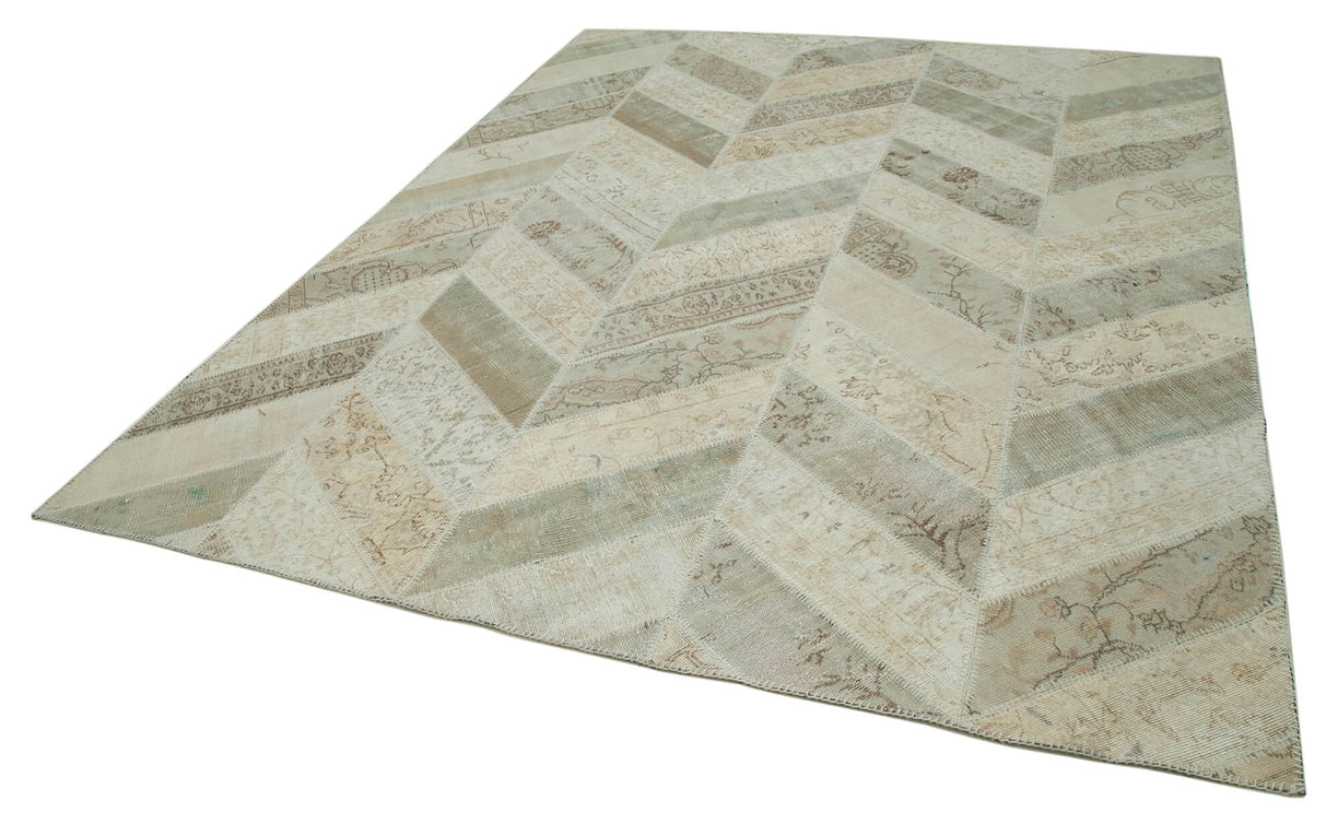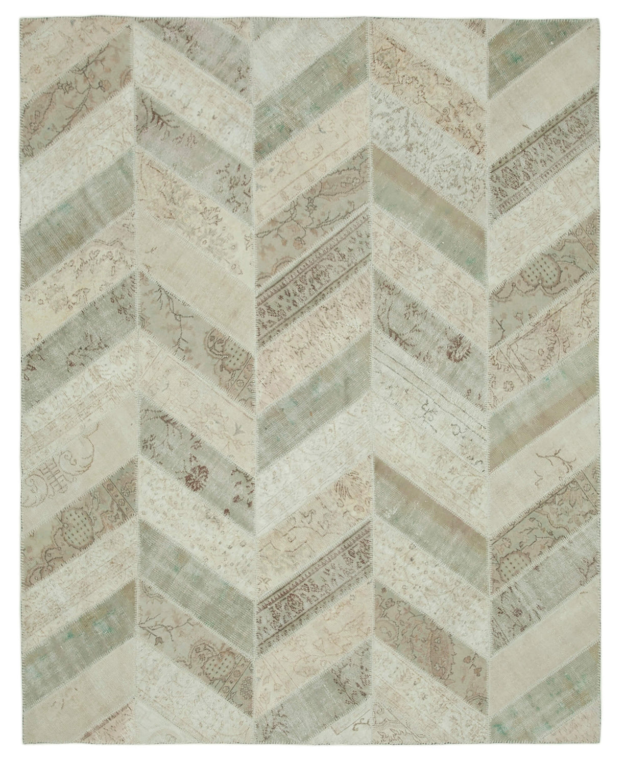 8x10 Beige Turkish Handmade Overdyed Patchwork Rug