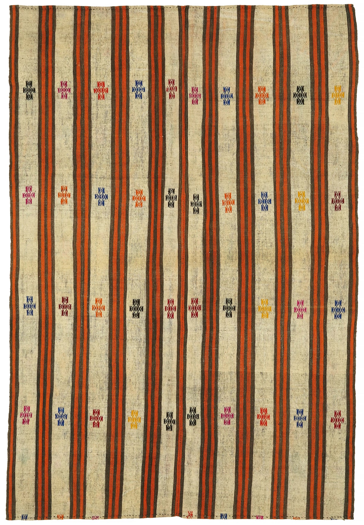 Chaput refers to old and repurposed textiles that were traditionally used in rural and tribal homes across Anatolia. These kilims are known for their unique charm and rustic character. Woven on traditional kilim looms, Chaput kilims often feature striped or checkered patterns that vary from region to region.The designs are never mass-produced—they reflect the weaver’s personal inspiration, local influences, and available materials. Each rug is one-of-a-kind, often carrying stories of heritage and everyday life through its composition and color.
