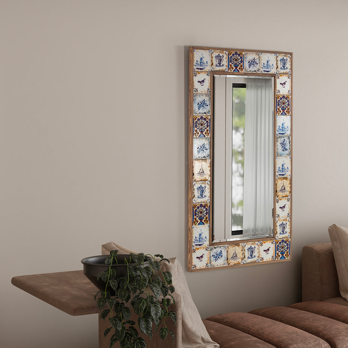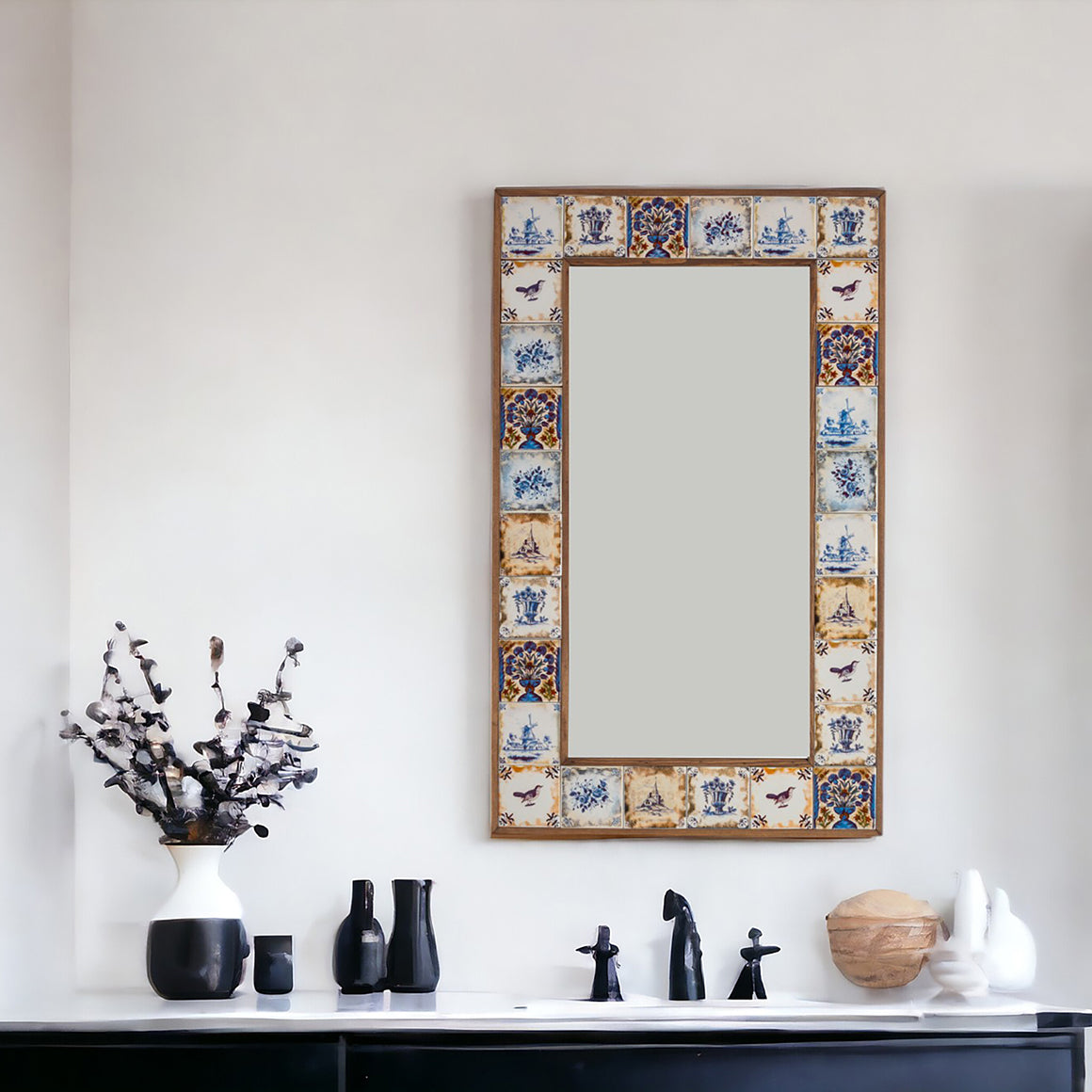 Step into a world of Turkish workmanship and elegance with our collection of handmade tile mirrors, lovingly created in the heart of Turkey. These mirrors are not just an ordinary reflection tool – they are statements of art. The frames, adorned with natural wood, add uniqueness and character to any space, while the top quality glass ensures crystal-clear reflections. What truly sets our mirrors apart is their special stone tiles. Each mirror boasts its own unique model and color, providing endless possibilities for decorating your interior. Whether you desire a small wall hanging mirror, a pier glass mirror, or a medium size mirror, we have a diverse range to cater to your aesthetic preferences. You can get the individuality with our custom-made mirrors, where pricing may vary based on your chosen specifications. You can modernize your living space with the charm and tradition of Turkey, one handmade mirror and that's it.