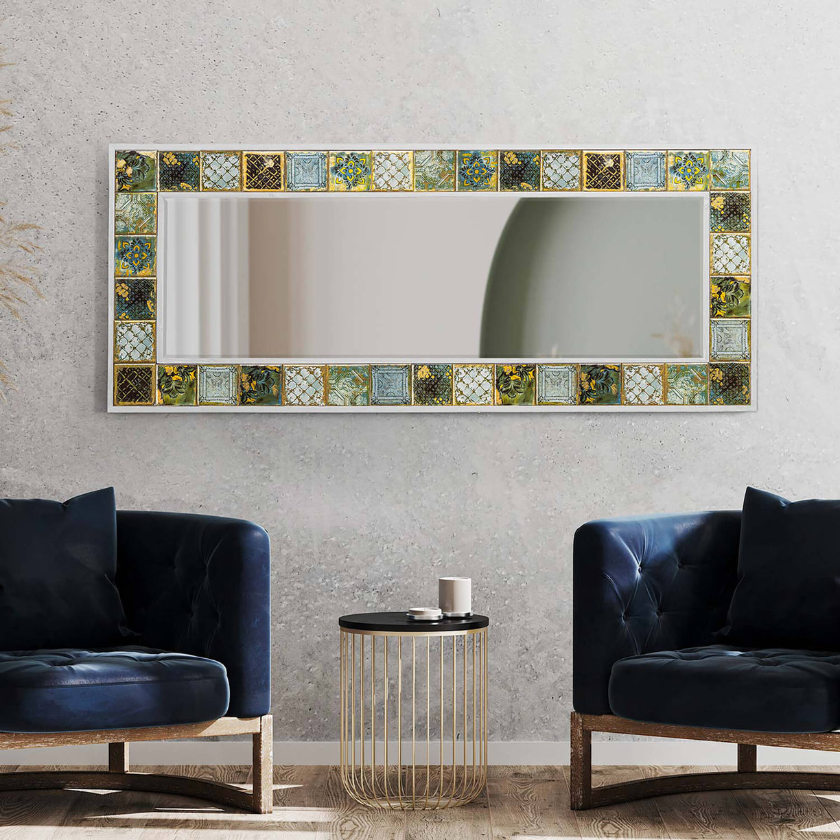 Enrich your living space with the timeless beauty of Turkish craftsmanship through our handcrafted tile mirrors. Produced in the heart of Turkey, each mirror showcases the artistry of our skilled artisans who meticulously create them from the finest tile and travertine stones. What sets our mirrors apart is the natural wood used for their frames, adding a touch of warmth and authenticity to the design. The glass of the mirror has been produced as a premium quality, ensuring clear reflections and durability. But that's not all – our tiles are as unique as your own imagination. With each model boasting distinct designs and colors, you have the freedom to seamlessly integrate them into your interior design. In our collection, you'll find an array of unique mirrors available in small, medium, and large sizes to fit your interior design needs. Whether you're searching for a charming wall hanging mirror, a sophisticated pier glass mirror, or a statement-making large size mirror, we have a mirror for every room in your home. If you're in search of a truly individual piece, we offer custom-made mirrors, though pricing may vary depending on your specifications. Elevate your space with the distinctive beauty of our handmade tile mirrors, inspired by Turkish tradition.