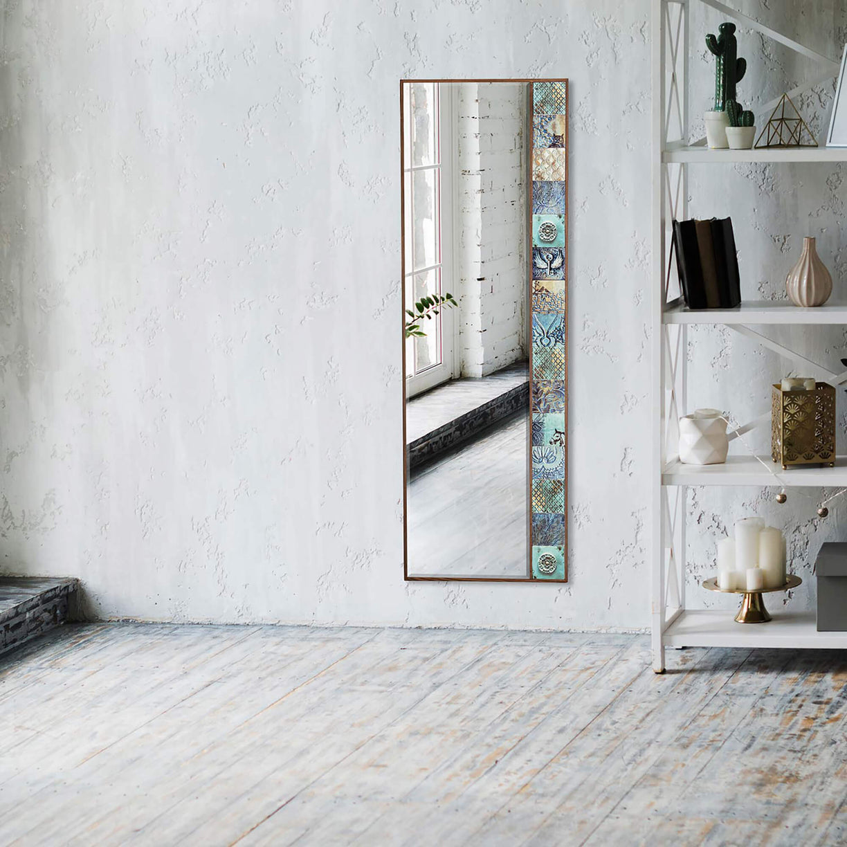 Transform your living space into a sanctuary of artistry with our collection of handmade tile mirrors, hailing from the craftsmanship-rich region of Turkey. Our mirrors are a true embodiment of cultural heritage, fashioned from exquisite tile and travertine stones. The frames of these mirrors are crafted from natural wood, adding a touch of warmth and authenticity to their design. The glass of the mirror has been produced as a premium quality, ensuring clear reflections and durability. And here's the unique part – our tiles are individual works of art, each boasting distinct models and colors, giving you the freedom to effortlessly complement your interior design. Embrace the allure of unique mirrors, available in various sizes, including small, medium, and large, catering to every nook and cranny of your home. Whether you prefer the charm of wall hanging mirrors, the grandiosity of pier glass mirrors, or the opulence of large size mirrors, our selection offers a mirror for every vision. We're also proud to offer custom-made mirrors for those seeking a personalized touch, though pricing may vary. Embrace the artistry of Turkey with our handcrafted mirrors that infuse elegance into any space.
