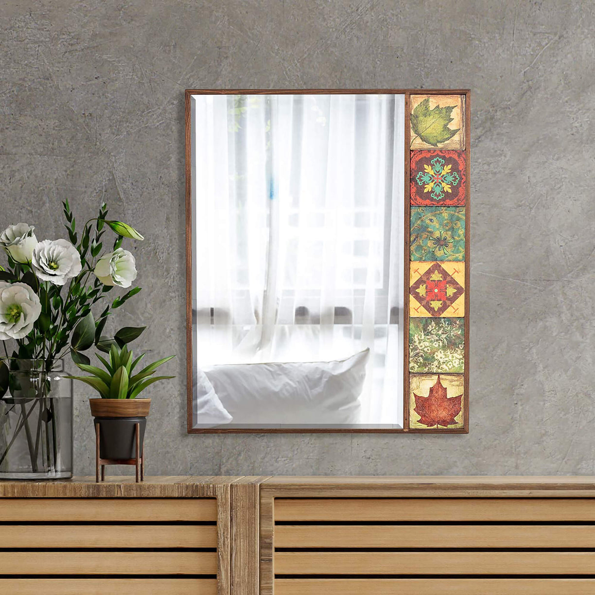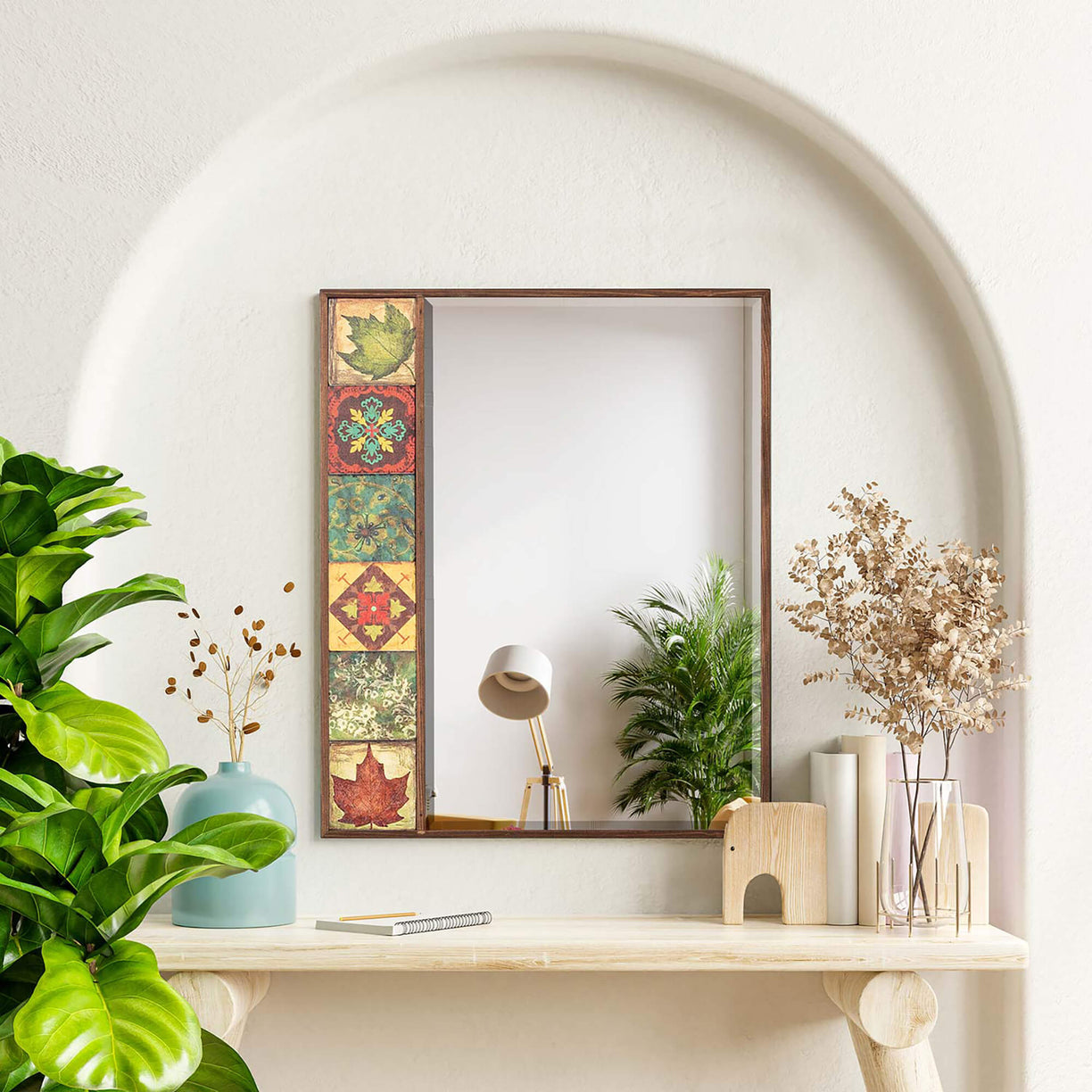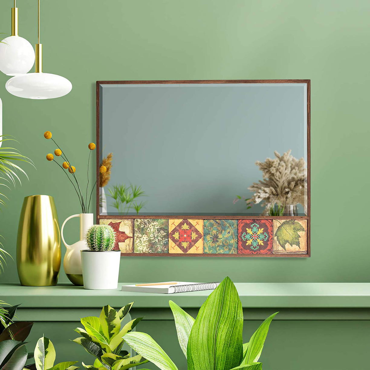 Discover the allure of Turkish elegance with our one-of-a-kind collection of wall hanging mirrors. Handcrafted with precision and passion, our handmade tile mirrors are a testament to the time-honored traditions of Turkish artisans. These mirrors are framed with natural wood, adding a touch of warmth and authenticity to their design. The glass of the mirror has been produced as a premium quality, ensuring clear reflections and durability. But that's not the only unique aspect – our tiles are each a work of art, featuring distinct models and colors, allowing you to easily incorporate them into your interior design. Made from exquisite tile and travertine stones, each mirror boasts a unique character, ensuring that no two are alike. Whether you desire the charm of a pier glass mirror or the grandeur of large size mirrors, our collection offers a wide array of choices. We even offer small and medium-sized mirrors to suit various spaces. Want something that truly reflects your personal style? We can create custom-made mirrors for you, although pricing may vary based on your preferences. Bring the enchantment of Turkey into your home with these unique, handcrafted mirrors.