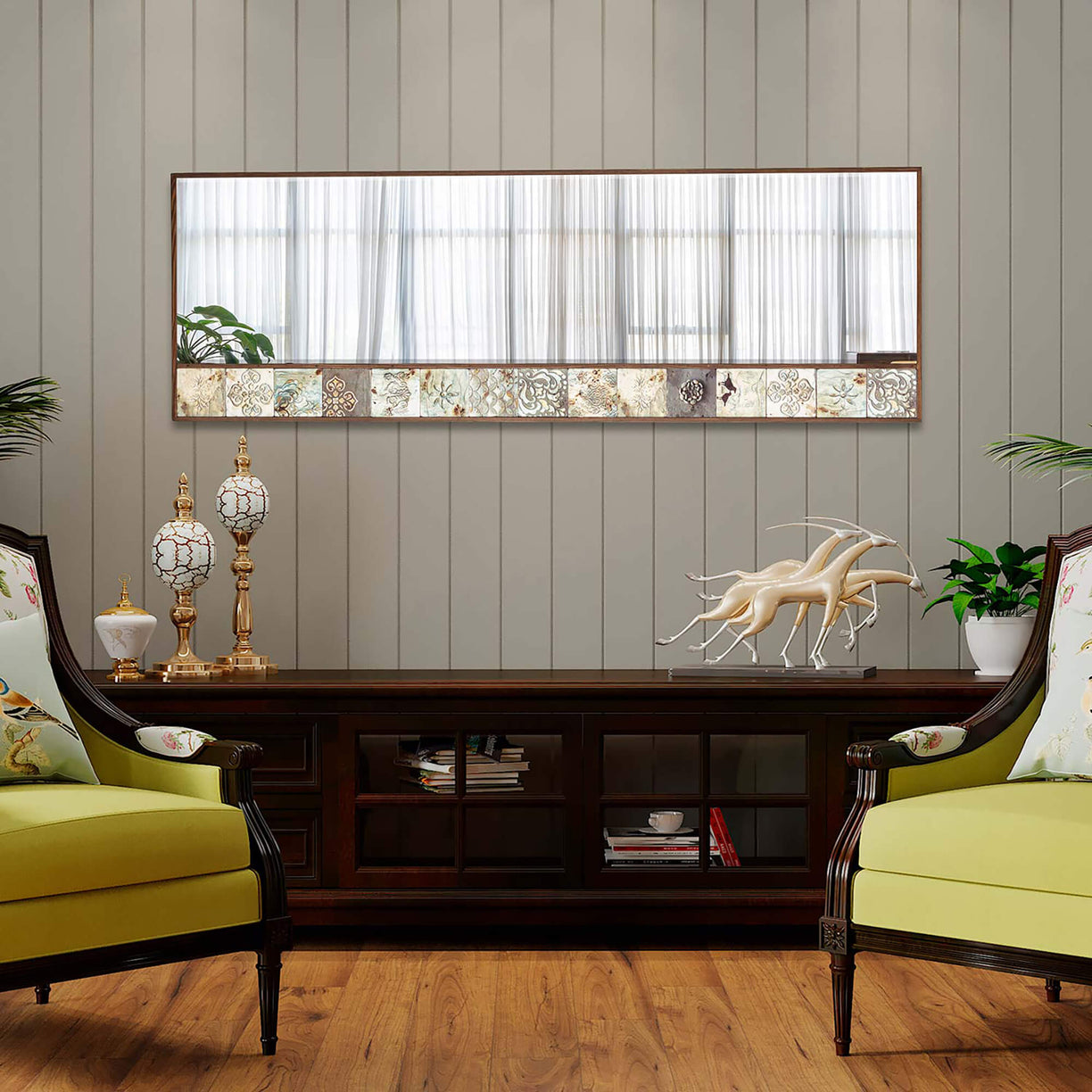 Wall hanging mirrors can enhance various areas within a home by adding light, depth, and style. Placing a mirror in entryways or foyers can create an inviting atmosphere, allowing people to check their appearance before entering or leaving the house. In the living room, hanging a mirror can visually expand the space, reflect light, and serve as an attractive decorative element, making the room feel brighter and more spacious. Similarly, in the dining room, mounting a mirror can add depth, create visual interest, and reflect ambient light, enhancing the dining experience and making the space feel more open. As for the bedroom, no specific information is provided. Wall hanging mirrors in bedrooms can serve both functional and decorative purposes. They allow for checking appearances and add style to the room's decor. Placing mirrors in hallways or corridors can make these spaces feel more open and less confined, especially in narrow or dark areas. Mirrors are essential in bathrooms for grooming purposes. Consider wall-mounted mirrors above sinks or vanity areas to aid daily routines. If you have a home gym or workout area, mirrors can help you monitor your form and technique. Mirrors can be used in home gyms or workout spaces to check form and posture while exercising. They create the illusion of a larger area and reflect light. When considering the placement of wall hanging mirrors, think about the room's layout, lighting, and how the mirror will complement the existing decor. Properly positioned mirrors can add functionality, create a sense of spaciousness, and enhance the overall aesthetics of different areas within a home.QUICK OVERVIEW