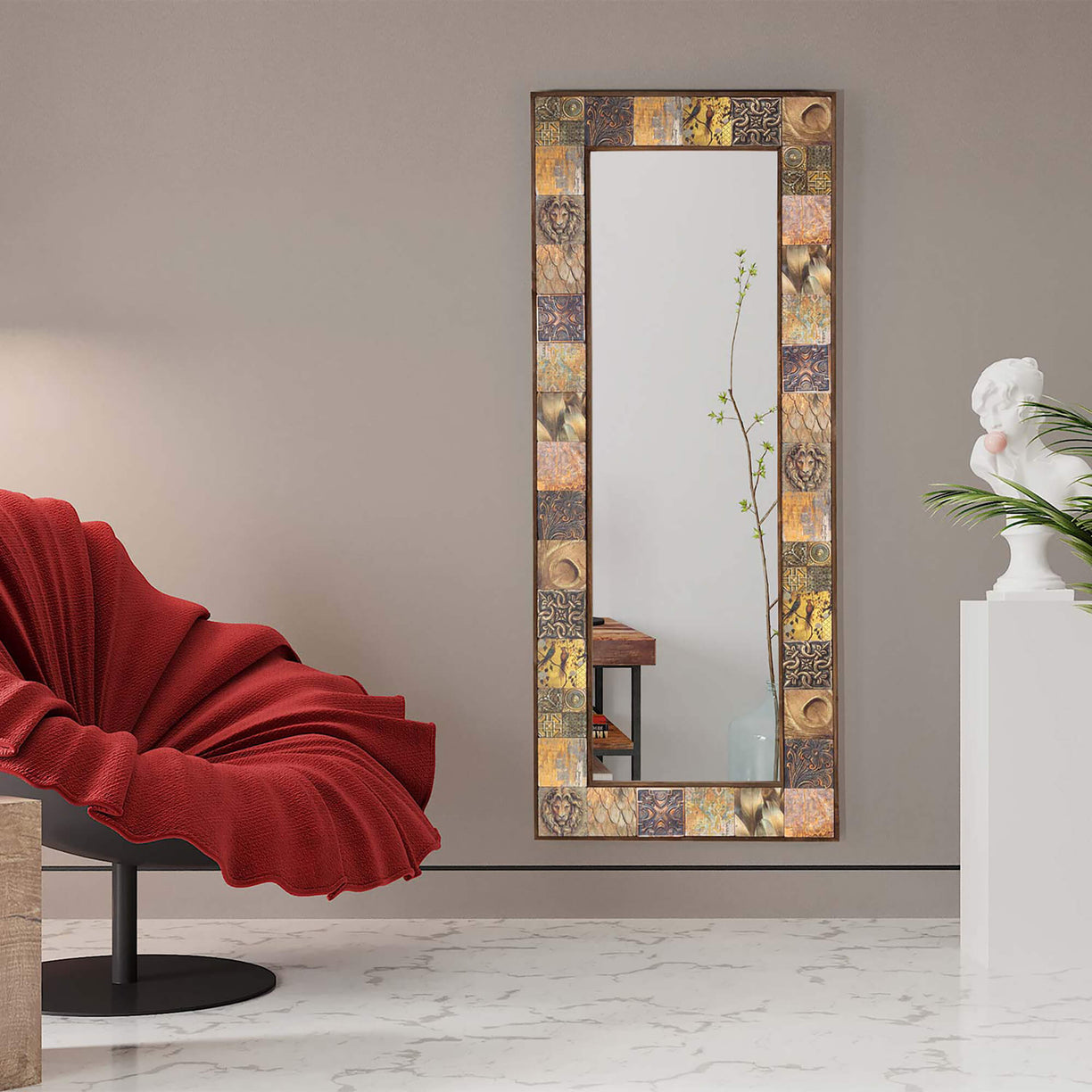 Discover the allure of Turkish elegance with our one-of-a-kind collection of wall hanging mirrors. Handcrafted with precision and passion, our handmade tile mirrors are a testament to the time-honored traditions of Turkish artisans. These mirrors are framed with natural wood, adding a touch of warmth and authenticity to their design. The glass of the mirror has been produced as a premium quality, ensuring clear reflections and durability. But that's not the only unique aspect – our tiles are each a work of art, featuring distinct models and colors, allowing you to easily incorporate them into your interior design. Made from exquisite tile and travertine stones, each mirror boasts a unique character, ensuring that no two are alike. Whether you desire the charm of a pier glass mirror or the grandeur of large size mirrors, our collection offers a wide array of choices. We even offer small and medium-sized mirrors to suit various spaces. Want something that truly reflects your personal style? We can create custom made mirrors for you, although pricing may vary based on your preferences. Bring the enchantment of Turkey into your home with these unique, handcrafted mirrors.