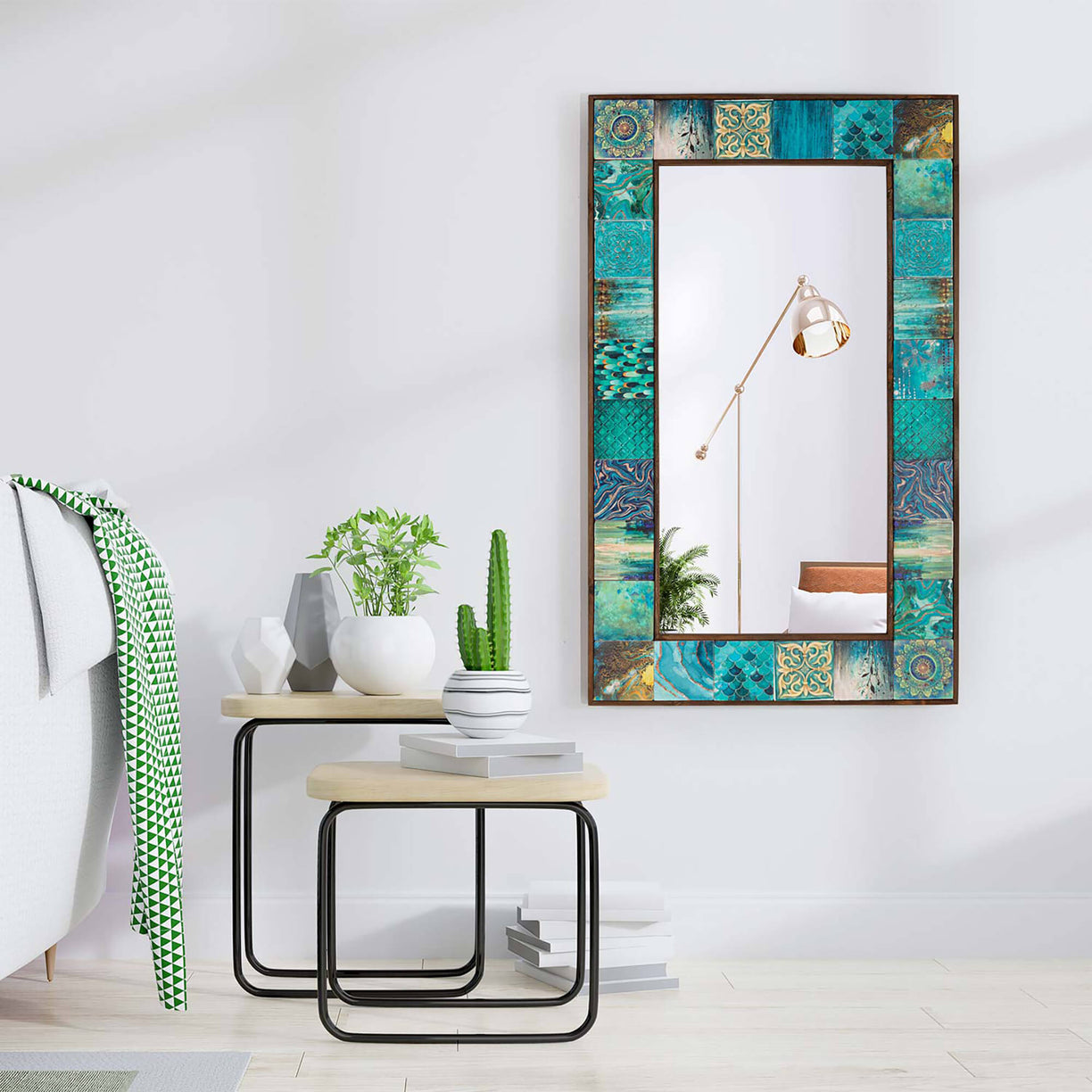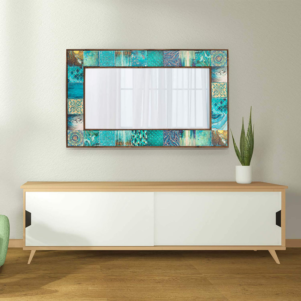 Transform your living space into a sanctuary of artistry with our collection of handmade tile mirrors, hailing from the craftsmanship-rich region of Turkey. Our mirrors are a true embodiment of cultural heritage, fashioned from exquisite tile and travertine stones. The frames of these mirrors are crafted from natural wood, adding a touch of warmth and authenticity to their design. The glass of the mirror has been produced as a premium quality, ensuring clear reflections and durability. And here's the unique part – our tiles are individual works of art, each boasting distinct models and colors, giving you the freedom to effortlessly complement your interior design. Embrace the allure of unique mirrors, available in various sizes, including small, medium, and large, catering to every nook and cranny of your home. Whether you prefer the charm of wall hanging mirrors, the grandiosity of pier glass mirrors, or the opulence of large size mirrors, our selection offers a mirror for every vision. We're also proud to offer custom made mirrors for those seeking a personalized touch, though pricing may vary. Embrace the artistry of Turkey with our handcrafted mirrors that infuse elegance into any space.
