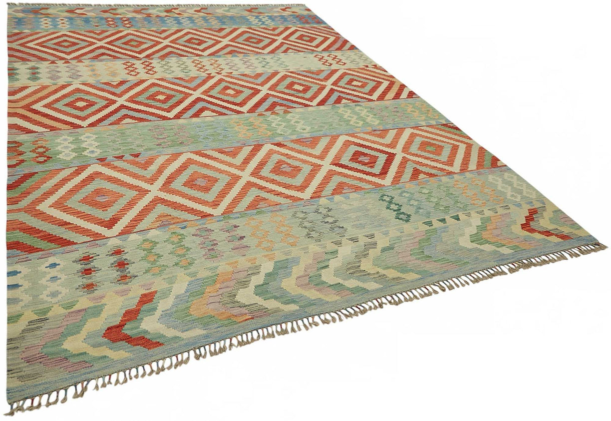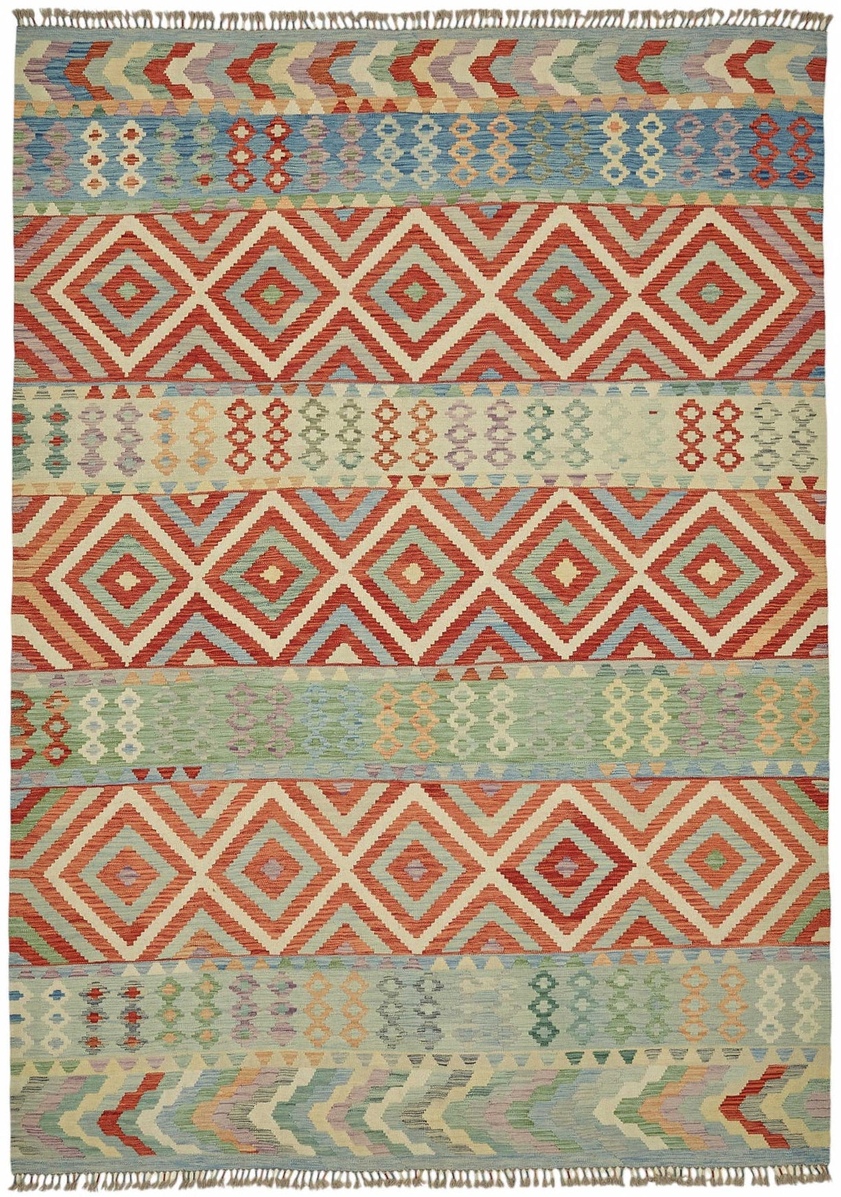 Crafted through a unique process, this kilim is made by unraveling old, vintage kilims and reweaving them into a fresh, modern piece using traditional techniques. This creative recycling method results in a completely one-of-a-kind design, rich in texture and story. Each piece carries the soul of its past, now reborn with contemporary aesthetics.Designed for minimalist and contemporary interiors, this kilim introduces a refined blend of geometric motifs and earthy tones, balancing warmth and elegance. Thanks to its natural dye composition, the colors are soft, rich, and organically faded — delivering a subtle sophistication.Beyond the floor, this kilim also works beautifully as a statement wall hanging, entryway accent, or a vibrant focal point in office spaces. The lightweight, flat-woven structure makes it easy to adapt to various functions and spaces. This piece speaks to lovers of both timeless craftsmanship and modern design sensibilities.