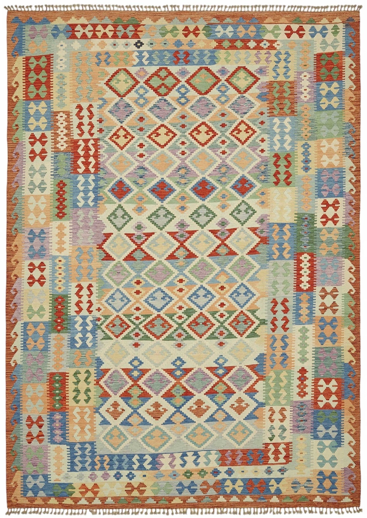 Crafted through a unique process, this kilim is made by unraveling old, vintage kilims and reweaving them into a fresh, modern piece using traditional techniques. This creative recycling method results in a completely one-of-a-kind design, rich in texture and story. Each piece carries the soul of its past, now reborn with contemporary aesthetics.Designed for minimalist and contemporary interiors, this kilim introduces a refined blend of geometric motifs and earthy tones, balancing warmth and elegance. Thanks to its natural dye composition, the colors are soft, rich, and organically faded — delivering a subtle sophistication.Beyond the floor, this kilim also works beautifully as a statement wall hanging, entryway accent, or a vibrant focal point in office spaces. The lightweight, flat-woven structure makes it easy to adapt to various functions and spaces. This piece speaks to lovers of both timeless craftsmanship and modern design sensibilities.