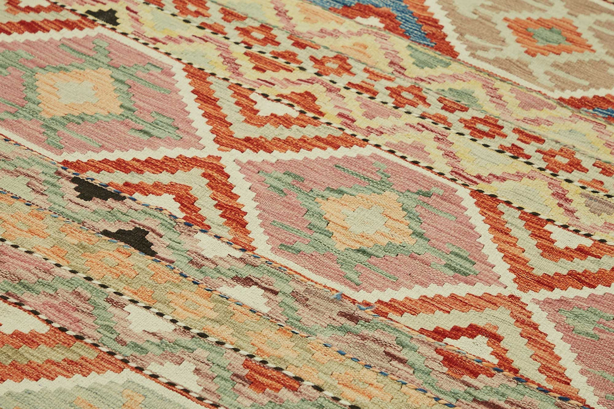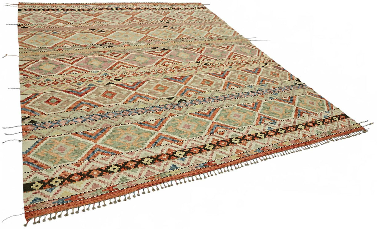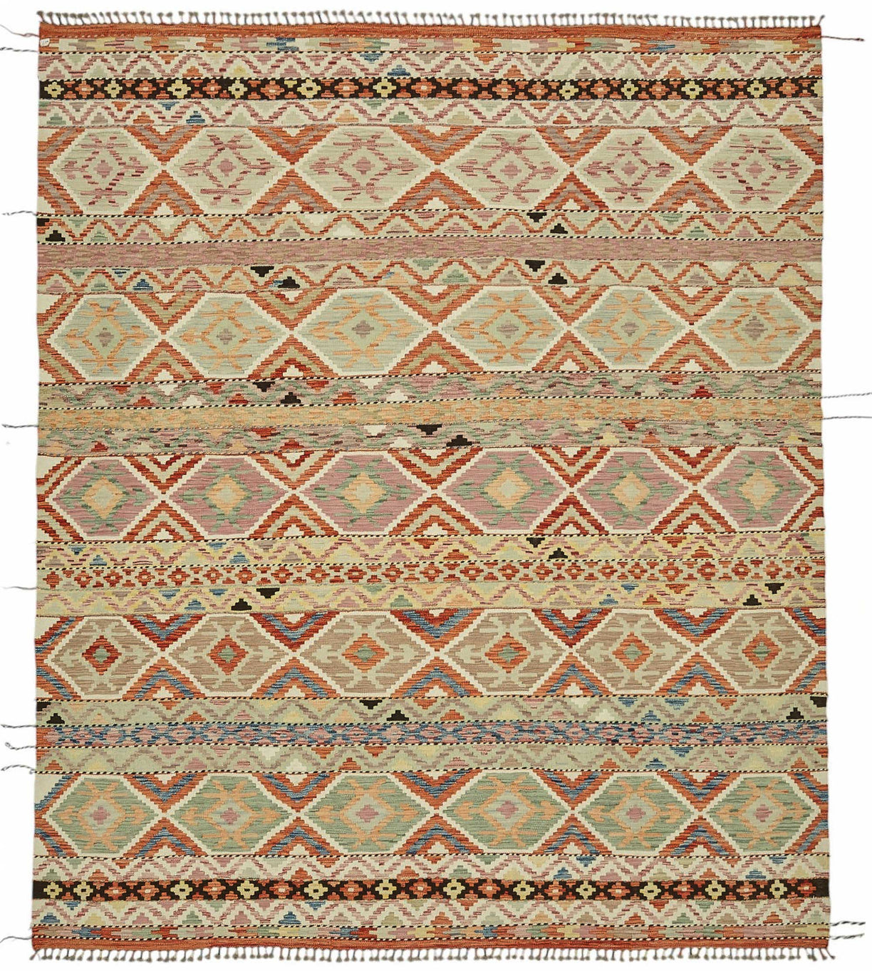 Crafted through a unique process, this kilim is made by unraveling old, vintage kilims and reweaving them into a fresh, modern piece using traditional techniques. This creative recycling method results in a completely one-of-a-kind design, rich in texture and story. Each piece carries the soul of its past, now reborn with contemporary aesthetics.Designed for minimalist and contemporary interiors, this kilim introduces a refined blend of geometric motifs and earthy tones, balancing warmth and elegance. Thanks to its natural dye composition, the colors are soft, rich, and organically faded — delivering a subtle sophistication.Beyond the floor, this kilim also works beautifully as a statement wall hanging, entryway accent, or a vibrant focal point in office spaces. The lightweight, flat-woven structure makes it easy to adapt to various functions and spaces. This piece speaks to lovers of both timeless craftsmanship and modern design sensibilities.