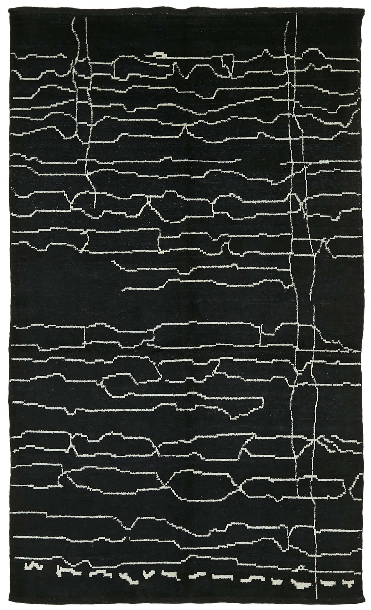 6' 3'' x 10' 2'' Black Color Moroccan Rug