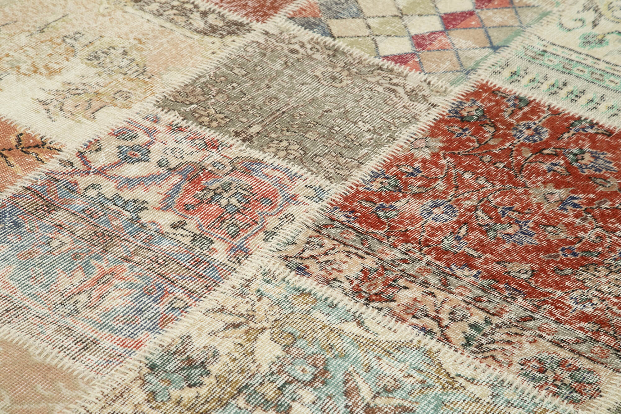 Our vintage Turkish patchwork rugs are crafted from carefully selected hand-knotted pieces woven in the 60s and 70s. Each rug is washed to soften the colors while preserving its intricate, original patterns. The fragments are then hand-stitched together using strong yarn, creating a beautifully unique rug backed with sturdy cotton cloth for added durability. Blending heritage with modern craftsmanship, these one-of-a-kind rugs offer a perfect balance of tradition and contemporary style, making them an ideal choice for any home or office.