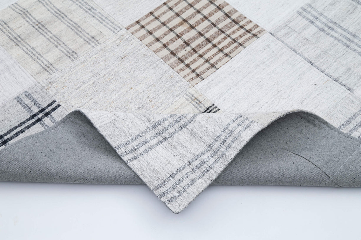 These unique handwoven patchwork kilims belong to a rare category of Anatolian flatweaves, often referred to as "perde kilims". Thinner and more flexible than traditional kilims, they are made using age-old weaving techniques on narrow looms. Panels are then skillfully stitched together, forming larger textile compositions from cotton, wool, and goat hair.What sets these rugs apart is their lightweight structure and rich historical significance. Originally used in Anatolian homes for both functional and decorative purposes, they now serve as refined and eco-conscious design elements. Their thinness adds an elegant layer of texture, making them ideal for wall hangings, bed runners, or accent rugs in low-traffic areas.