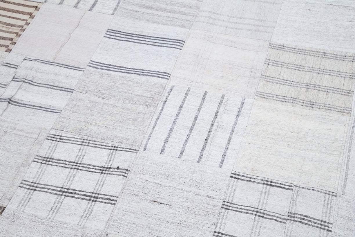 These unique handwoven patchwork kilims belong to a rare category of Anatolian flatweaves, often referred to as "perde kilims". Thinner and more flexible than traditional kilims, they are made using age-old weaving techniques on narrow looms. Panels are then skillfully stitched together, forming larger textile compositions from cotton, wool, and goat hair.What sets these rugs apart is their lightweight structure and rich historical significance. Originally used in Anatolian homes for both functional and decorative purposes, they now serve as refined and eco-conscious design elements. Their thinness adds an elegant layer of texture, making them ideal for wall hangings, bed runners, or accent rugs in low-traffic areas.