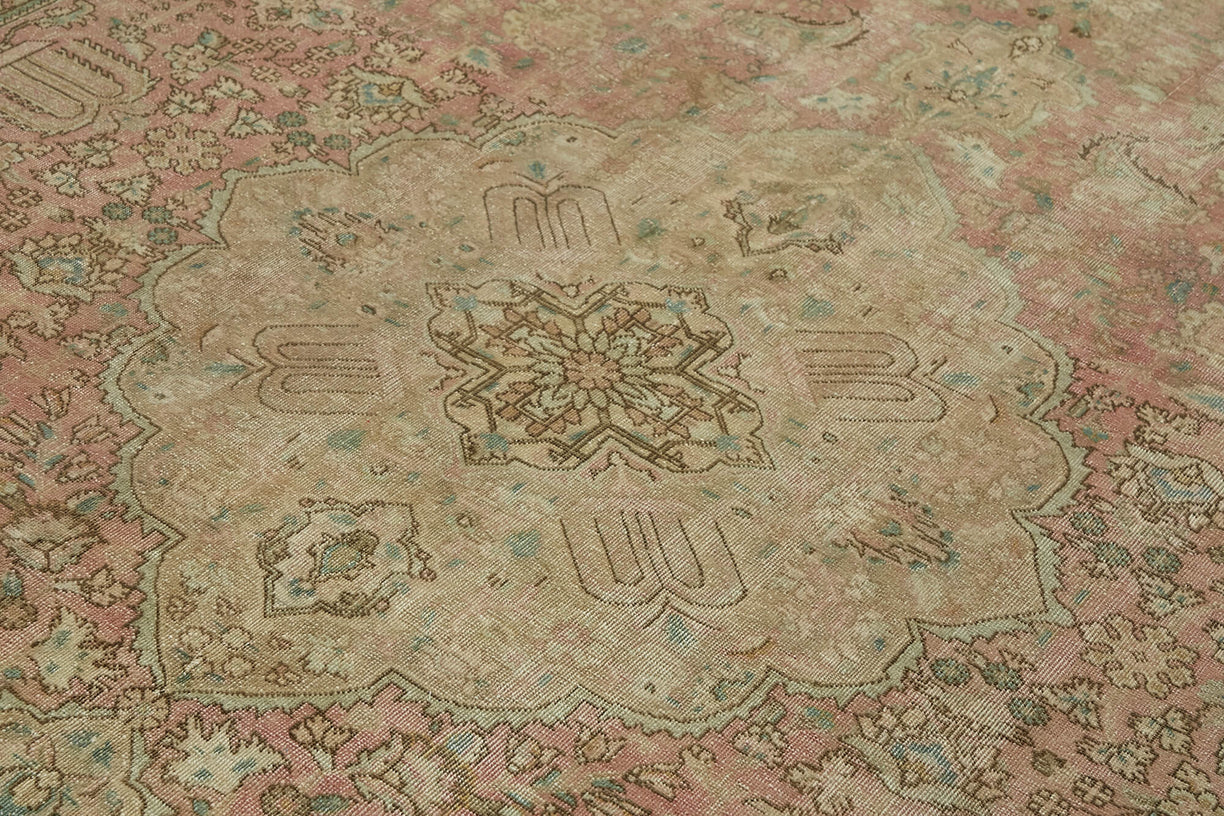 Experience contemporary elegance with a touch of vintage allure through our curated collection of Oriental oversize area rugs from the 1960s and 1970s. Each rug is handwoven with wool on cotton, exuding timeless charm and impeccable craftsmanship. The rugs are trimmed to perfection for a captivating 'distressed' look. They measure 8' x 10' 11'', making them the perfect statement piece to complement any modern decor. Explore the beautiful fusion of heritage and style. Each rug tells a story of artisanal mastery and enduring beauty.