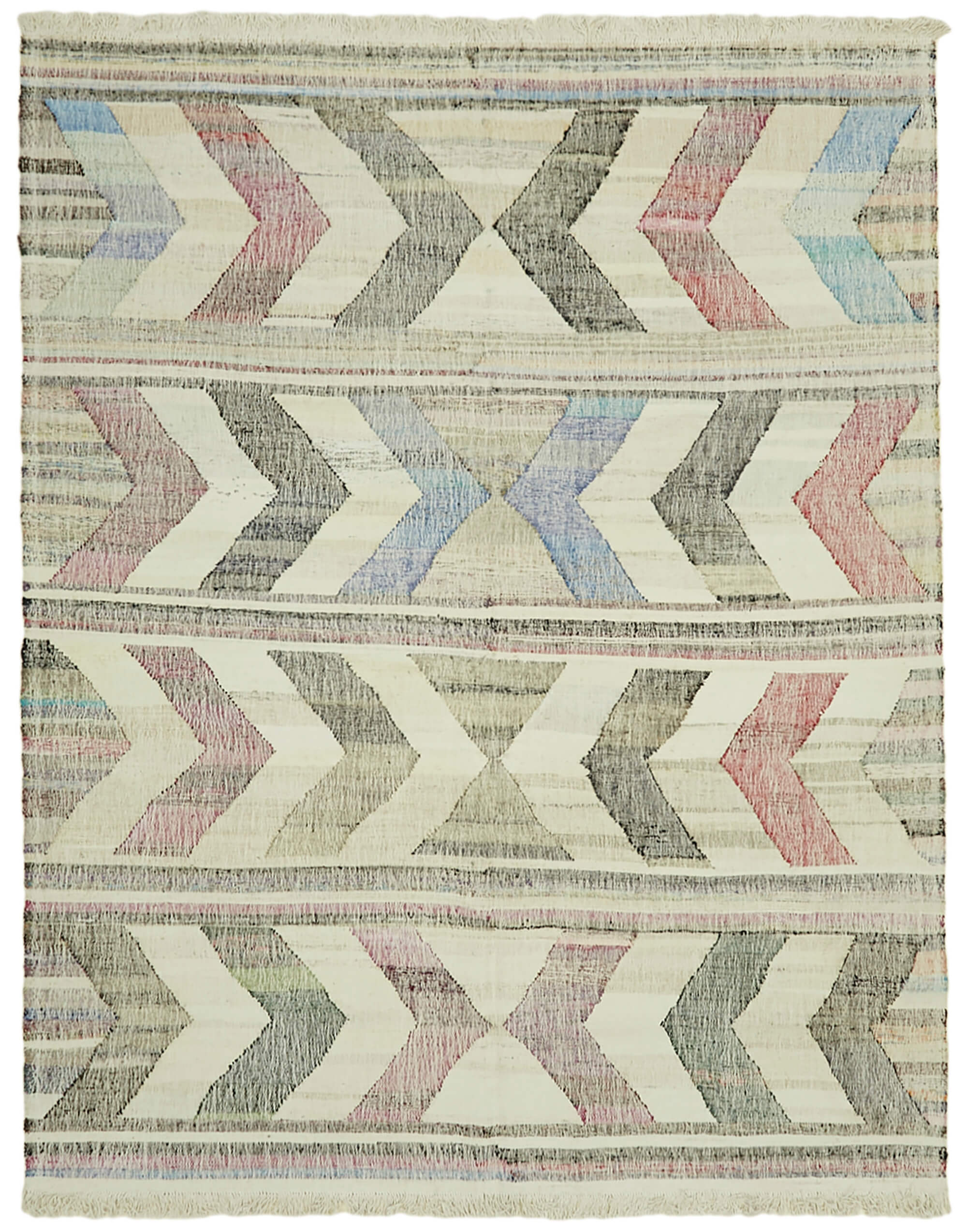 8x10 One-of-a-Kind Turkish Rewoven Rag Rug - 41895