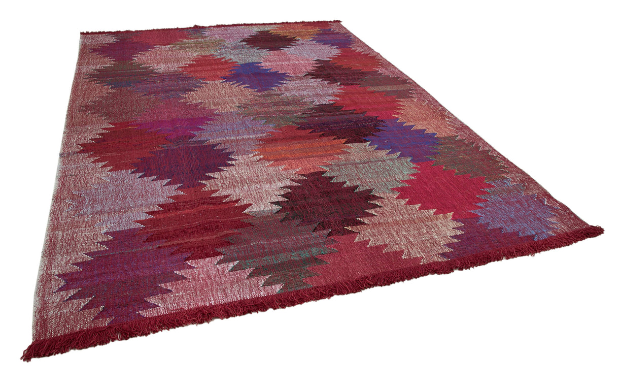 Handwoven Rag Kilim – Where Recycled Threads Meet Artistic ModernityThis stunning rag rug is a testament to how traditional craftsmanship can be reimagined into something completely modern. Created by unraveling old kilims, the cotton and fabric yarns are reborn into a fresh, bold design that reflects today’s minimal yet artistic home décor preferences.Each rug tells a story — from the old yarn once woven into vintage kilims, now transformed into a sleek and contemporary piece. The result is not only eco-conscious, but also entirely one-of-a-kind. Expect a playful mix of colors and textures, with subtle geometric patterns that provide movement and life to any space.Thanks to its lightweight and flat-woven structure, this kilim is easy to handle and style. Whether draped over a wooden floor, layered with modern furniture, or hung on a feature wall, it adds texture, color, and a handcrafted spirit to your interior.