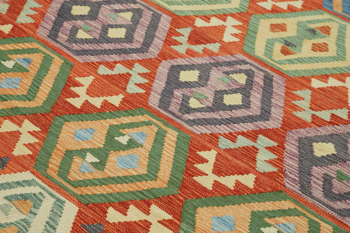 Crafted through a unique process, this kilim is made by unraveling old, vintage kilims and reweaving them into a fresh, modern piece using traditional techniques. This creative recycling method results in a completely one-of-a-kind design, rich in texture and story. Each piece carries the soul of its past, now reborn with contemporary aesthetics.Designed for minimalist and contemporary interiors, this kilim introduces a refined blend of geometric motifs and earthy tones, balancing warmth and elegance. Thanks to its natural dye composition, the colors are soft, rich, and organically faded — delivering a subtle sophistication.Beyond the floor, this kilim also works beautifully as a statement wall hanging, entryway accent, or a vibrant focal point in office spaces. The lightweight, flat-woven structure makes it easy to adapt to various functions and spaces. This piece speaks to lovers of both timeless craftsmanship and modern design sensibilities.
