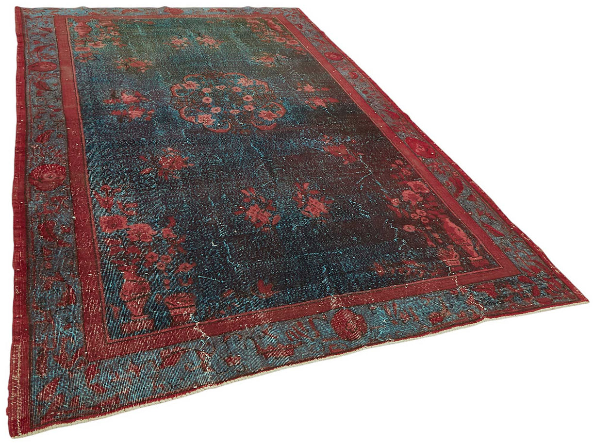 Discover the artistry of our Over-Dyed Rugs collection, where vintage hand-knotted Turkish rugs from the 1960s and 70s are given a bold contemporary transformation. These authentic pieces undergo a meticulous process of color removal and revitalization with fresh, vibrant tones, preserving their timeless Oriental charm. The standout feature of this collection lies in the intricate hand-carving of the original patterns, creating a striking three-dimensional effect that elevates each rug into a piece of contemporary art. Crafted from 100% wool on cotton, these distressed rugs bring a harmonious blend of tradition and modernity, perfect for enhancing any contemporary interior.