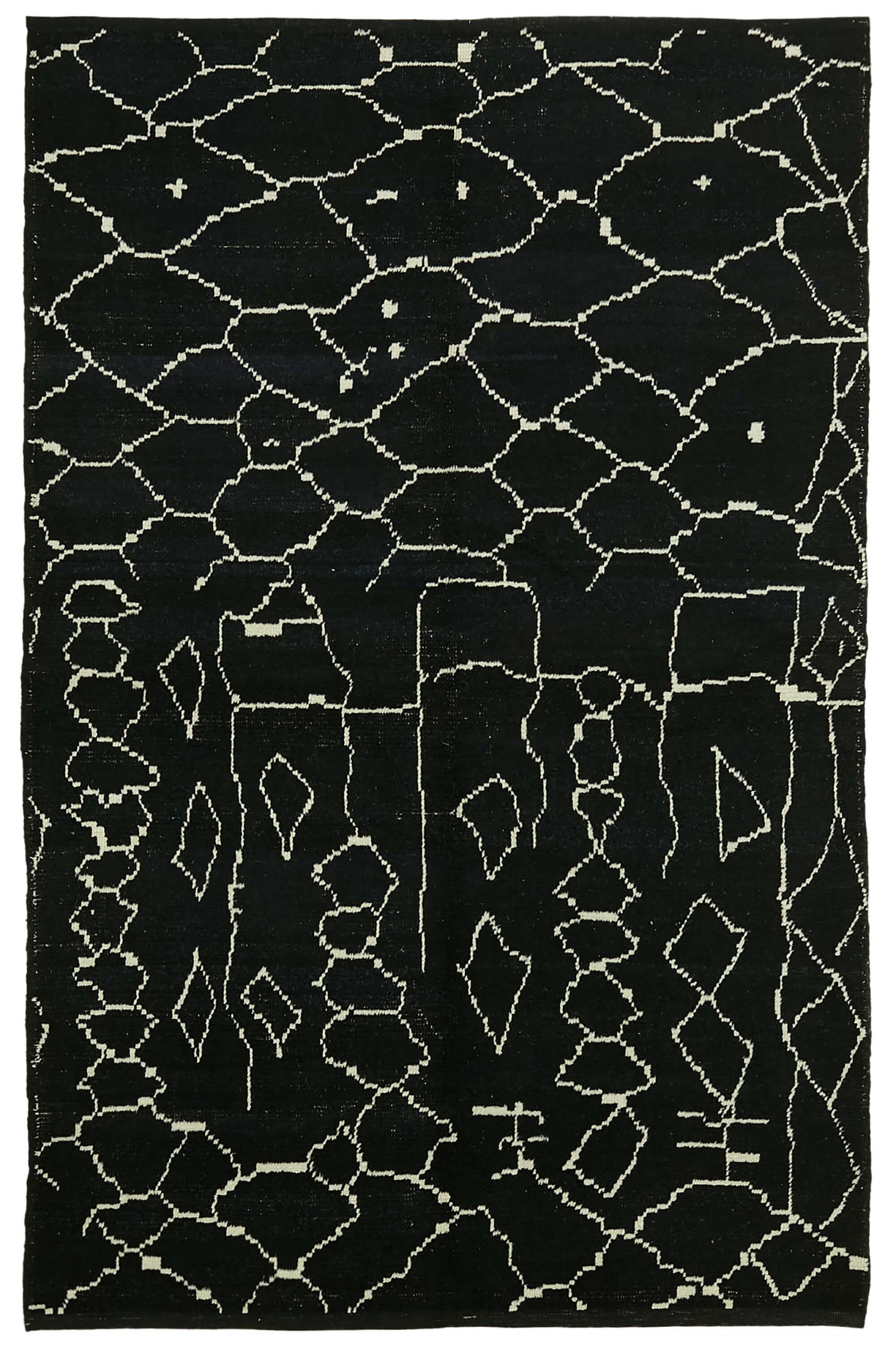6' 5'' x 9' 9'' Black Color Moroccan Rug