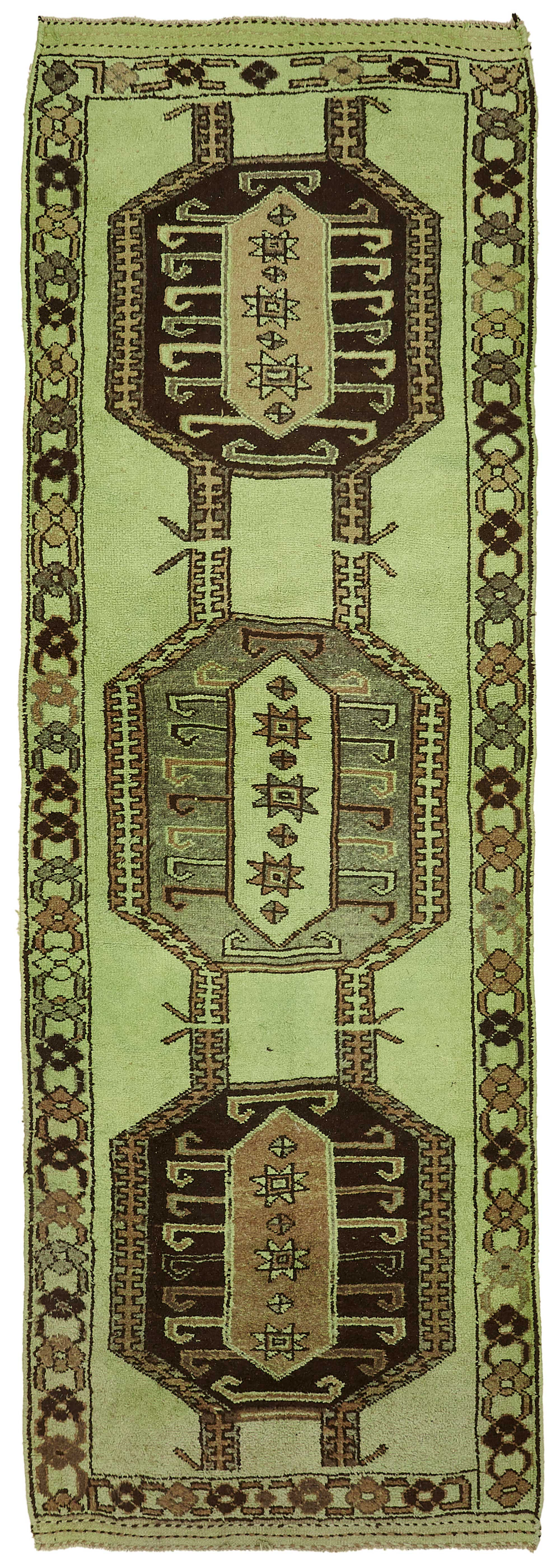 This exquisite runner rug is a rare example of tribal craftsmanship, hand-knotted by the women of the Herki tribe during the 1930s and 1940s. Made with exceptional-quality wool and tightly knotted to create a dense, medium-pile texture, these rugs are known for their lasting strength and luxurious feel underfoot.
