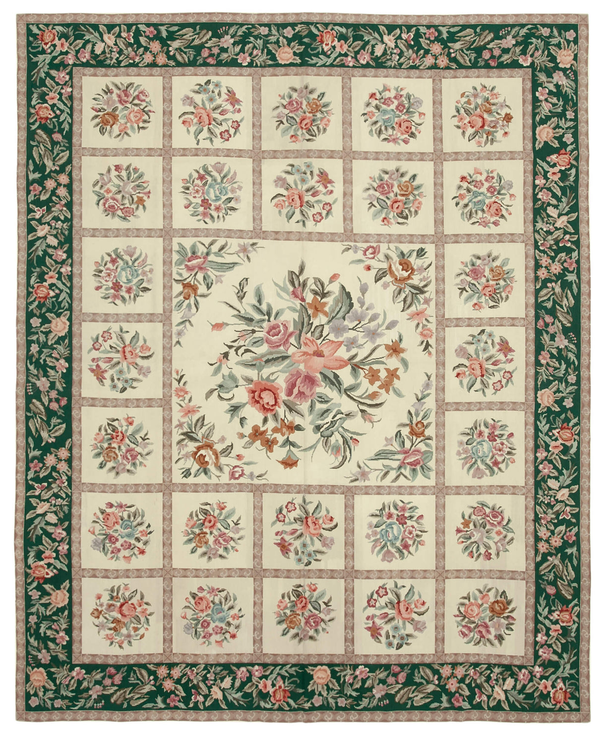 European kilims, such as Needlepoint Tapestries, are celebrated for their intricate craftsmanship and rich heritage. Known also as double stitch, cross-stitch, or Gobelin stitch kilims, these pieces were traditionally handwoven to grace the walls of palaces, castles, and grand residences. Today, their legacy continues with the same authentic weaving techniques refined over generations.These flatwoven masterpieces typically feature floral bouquets, vines, and ornamental medallions, echoing the artistic elegance of European aristocratic interiors. Their elaborate patterns and oversized formats reflect their noble origins, making them ideal for wall décor, hallways, or formal salons seeking a statement piece.