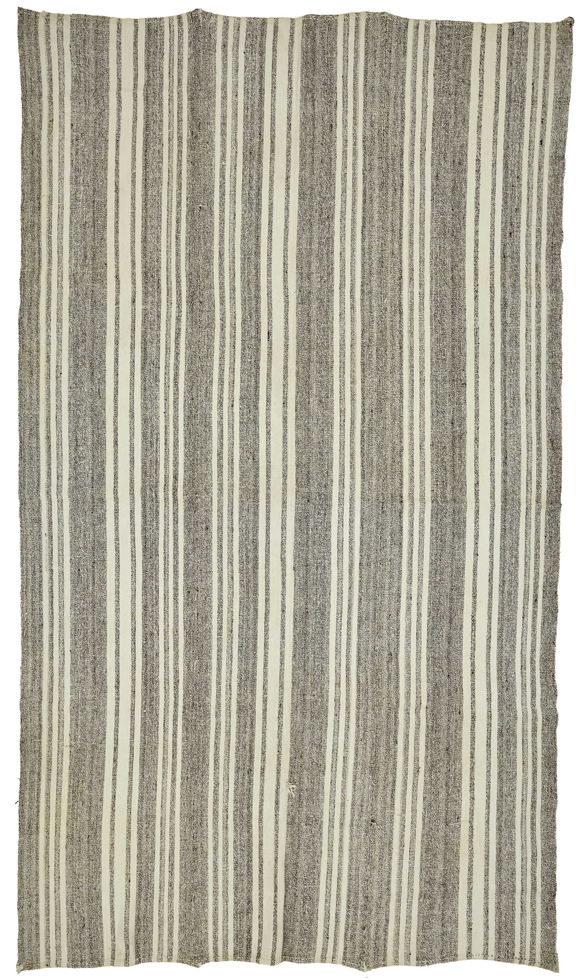 This handwoven kilim is crafted from a unique blend of goat hair and wool, a time-honored material combination used by Anatolian tribes for centuries. Known for its stiff, coarse texture, goat hair was traditionally used to make tents, saddle bags, and floor coverings due to its incredible durability and weather resistance.These vintage kilims, usually 40–60 years old, are perfect for high-traffic areas such as hallways, entryways, and office floors. The strong fiber structure allows the rug to lie flat and maintain its form over time.