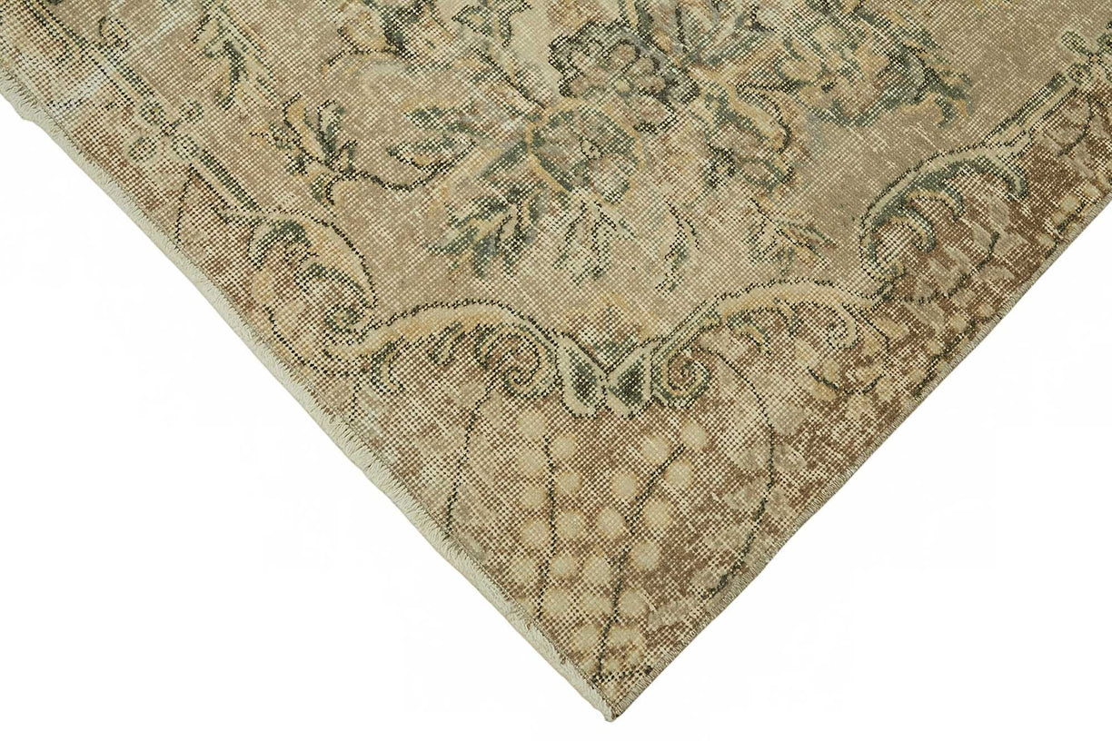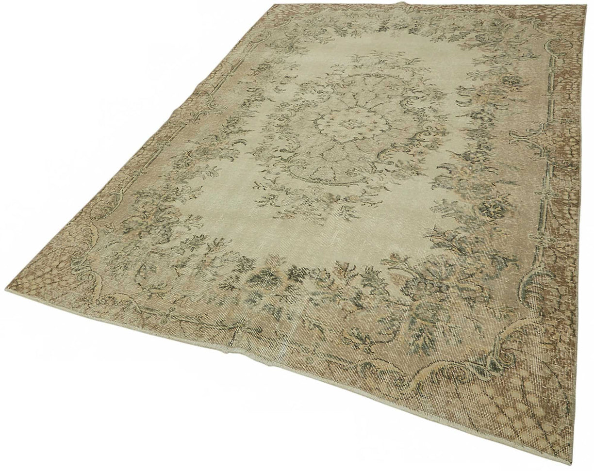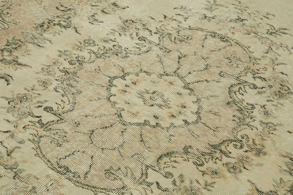 This stunning piece is part of our curated collection of vintage rugs, crafted from authentic hand-knotted Turkish carpets that have aged gracefully over 40 to 60 years. Originally made from wool on cotton, each rug is carefully handwoven and selected for its enduring design and construction. The aging process, followed by delicate cleaning and a specialized distressing technique, brings new life to these traditional oriental pieces.Using expert fading and color-neutralizing methods, the rug’s original vibrant tones are softened into subtle, natural hues—turning once-bold traditional motifs into charmingly faded patterns that carry both history and modern appeal. The result is a low pile, textural surface that feels light and effortless in any setting.These rugs are a favorite in the world of interior design, especially in spaces that embrace bohemian, Scandinavian, or contemporary decor. Their timeless look fits beautifully into living rooms, bedrooms, or dining areas, offering a balanced fusion of nostalgia and modern refinement.