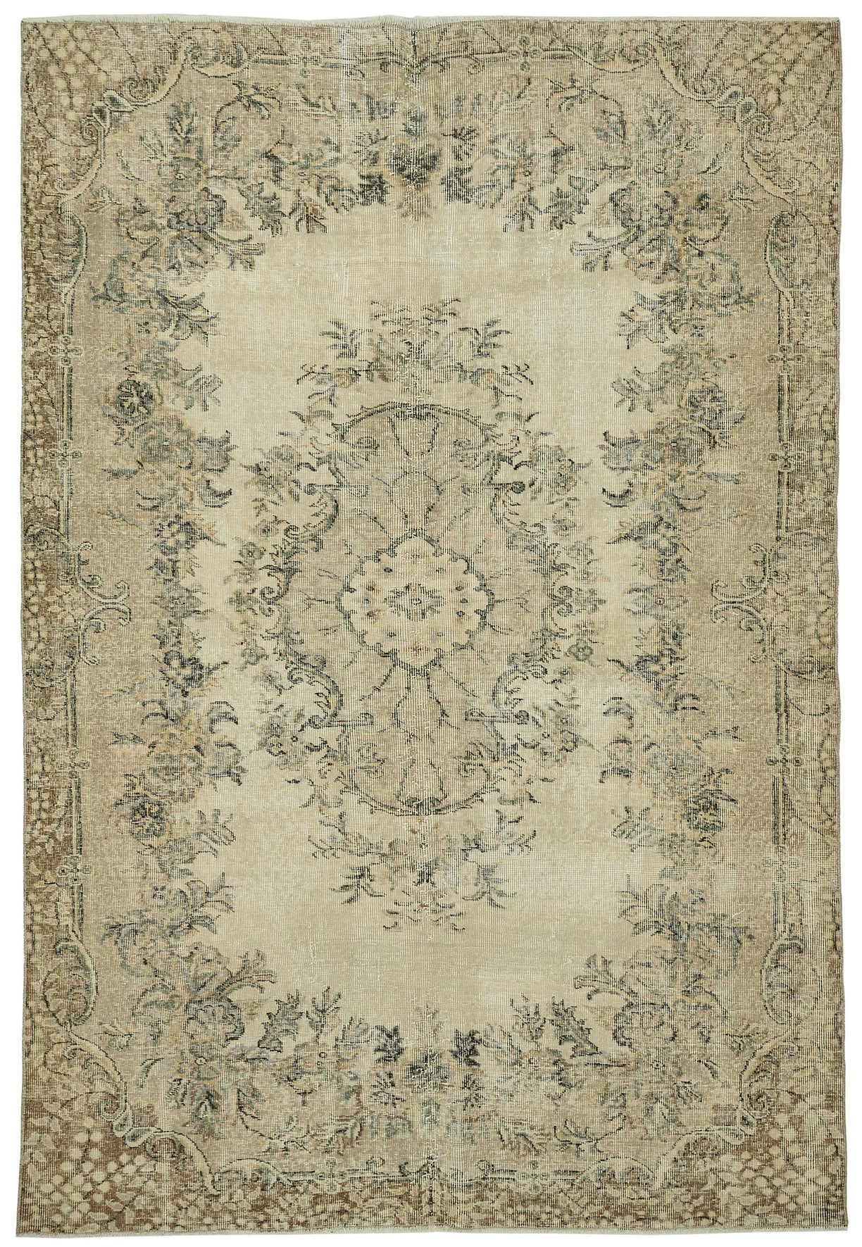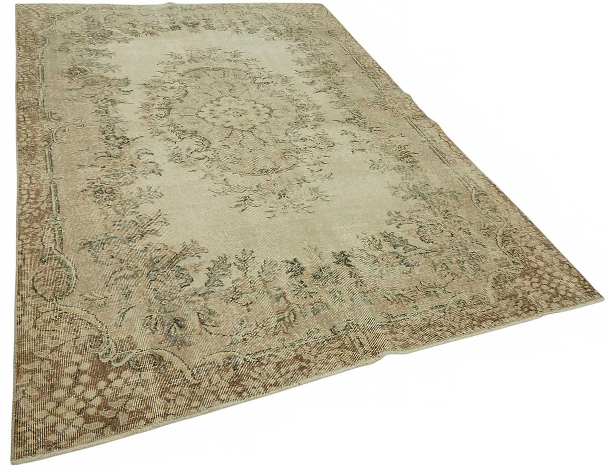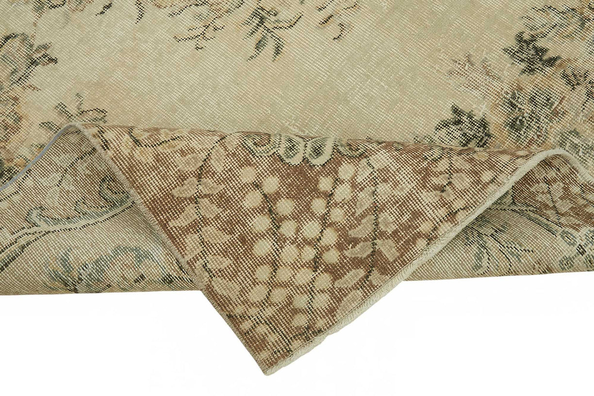 This stunning piece is part of our curated collection of vintage rugs, crafted from authentic hand-knotted Turkish carpets that have aged gracefully over 40 to 60 years. Originally made from wool on cotton, each rug is carefully handwoven and selected for its enduring design and construction. The aging process, followed by delicate cleaning and a specialized distressing technique, brings new life to these traditional oriental pieces.Using expert fading and color-neutralizing methods, the rug’s original vibrant tones are softened into subtle, natural hues—turning once-bold traditional motifs into charmingly faded patterns that carry both history and modern appeal. The result is a low pile, textural surface that feels light and effortless in any setting.These rugs are a favorite in the world of interior design, especially in spaces that embrace bohemian, Scandinavian, or contemporary decor. Their timeless look fits beautifully into living rooms, bedrooms, or dining areas, offering a balanced fusion of nostalgia and modern refinement.